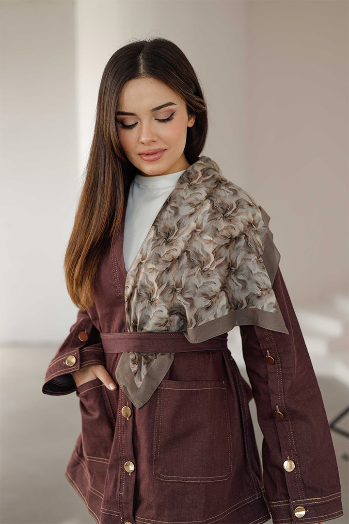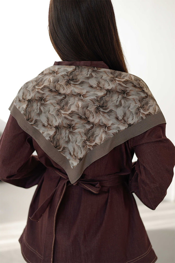 %100 Organik Pamuk Fular Ebru Desen Vizon
