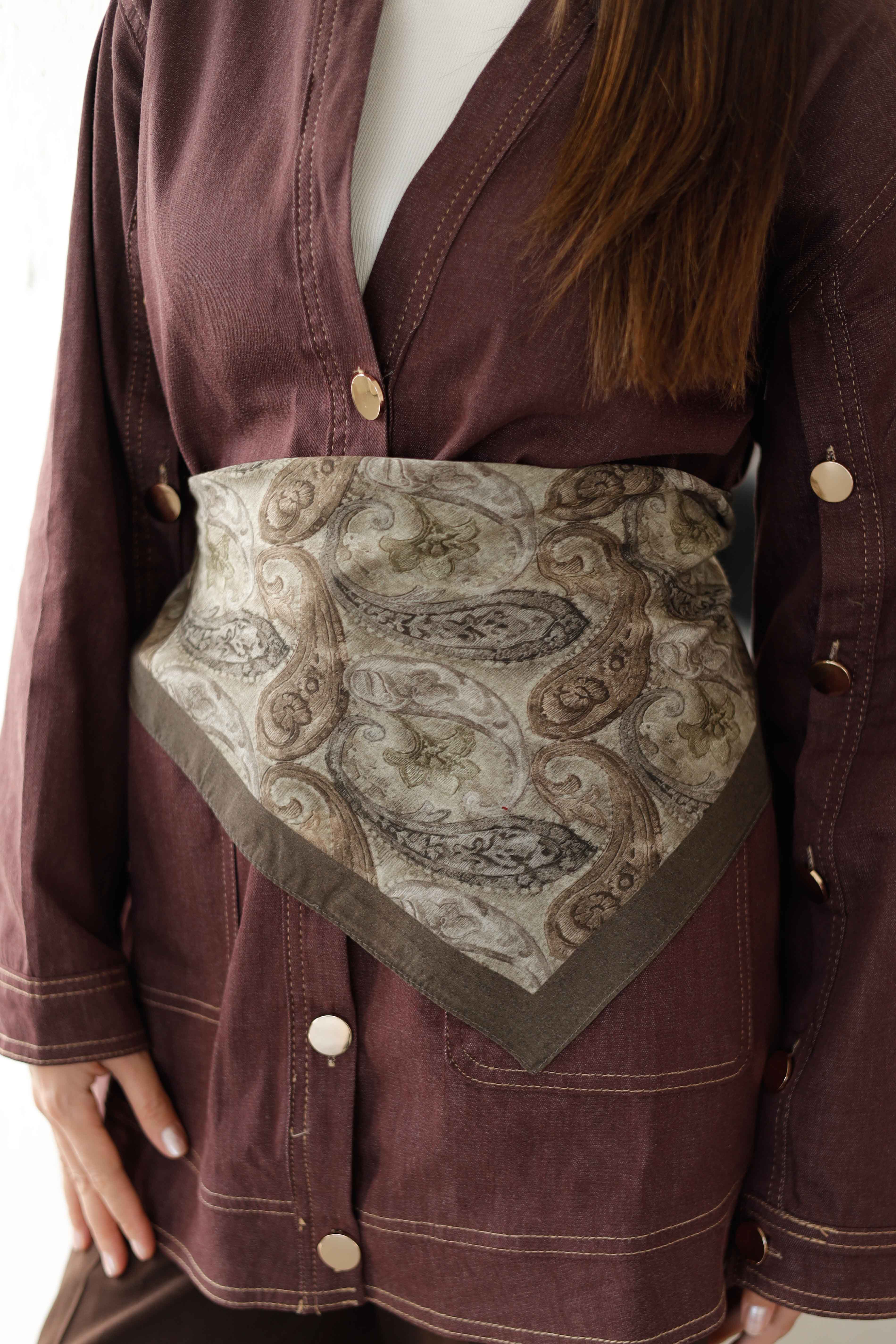 %100 Organik Pamuk Fular Şal Desen Haki Yeşili