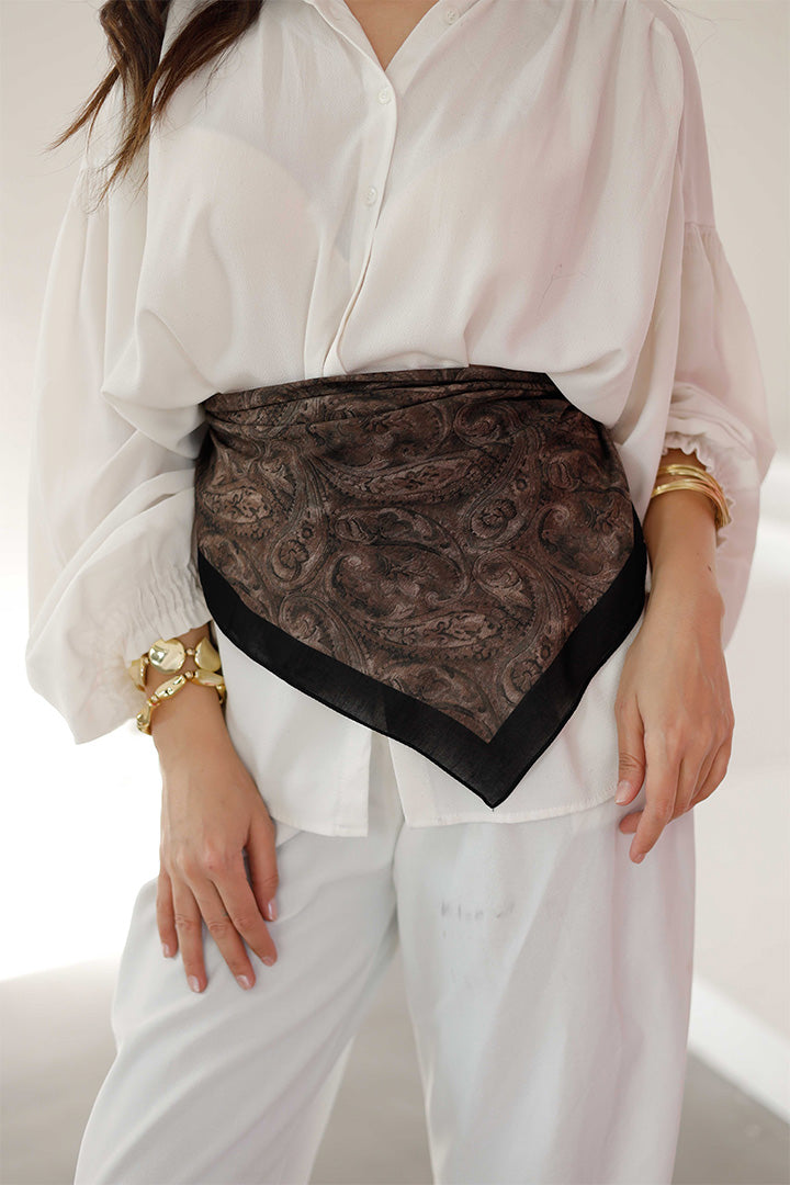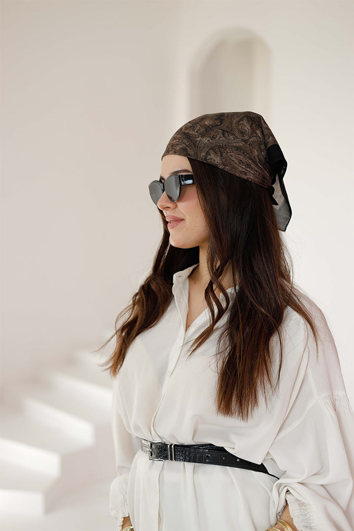 %100 Organik Pamuk Fular Şal Desen Kahverengi