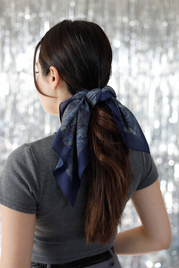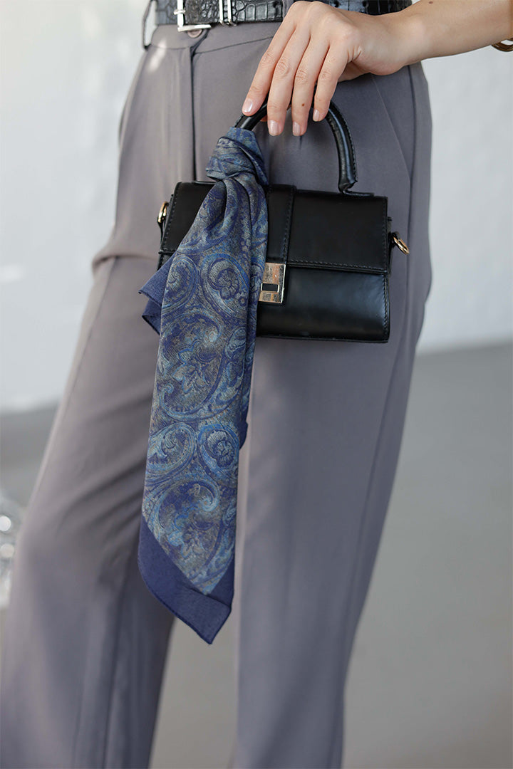 %100 Organik Pamuk Fular Şal Desen Lacivert