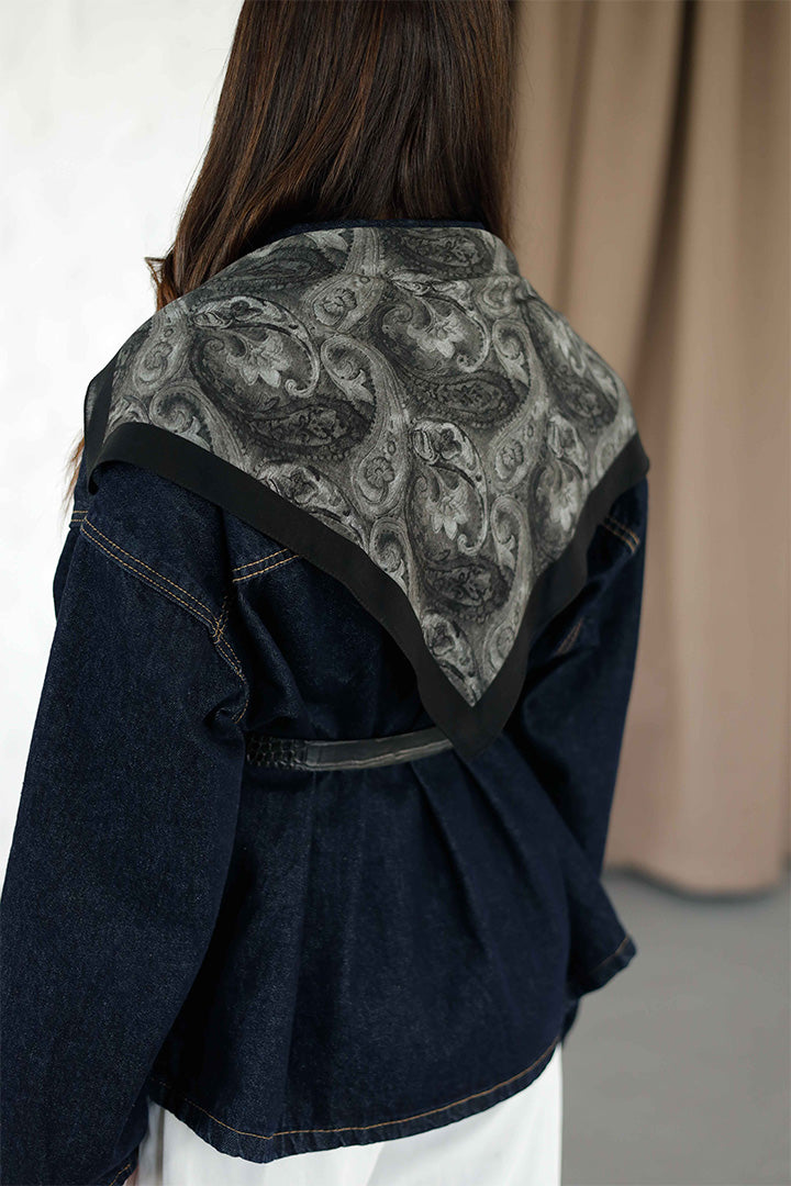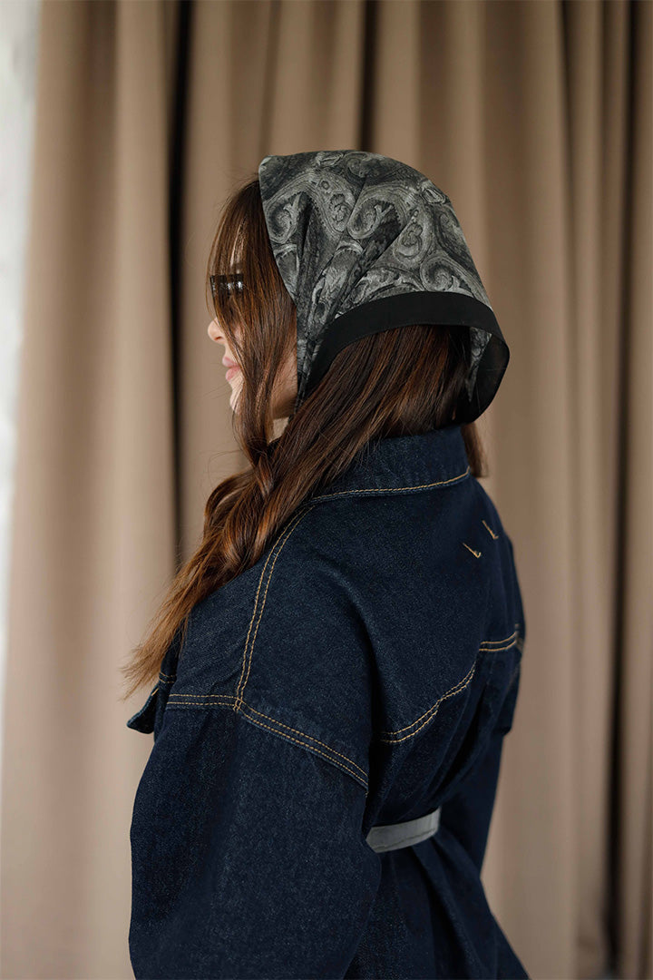 %100 Organik Pamuk Fular Şal Desen Siyah