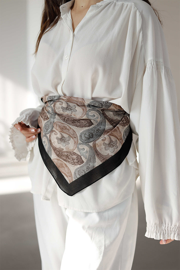 %100 Organik Pamuk Fular Şal Desen Siyah Krem