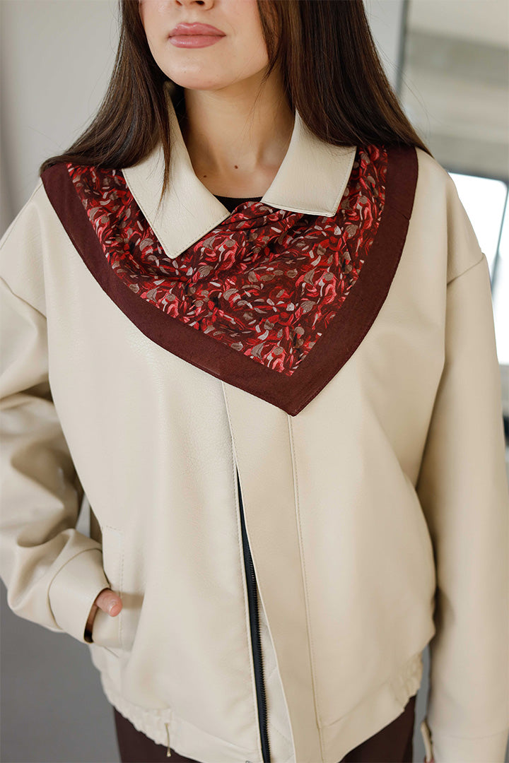%100 Organik Pamuk Fular Yaprak Desen Bordo