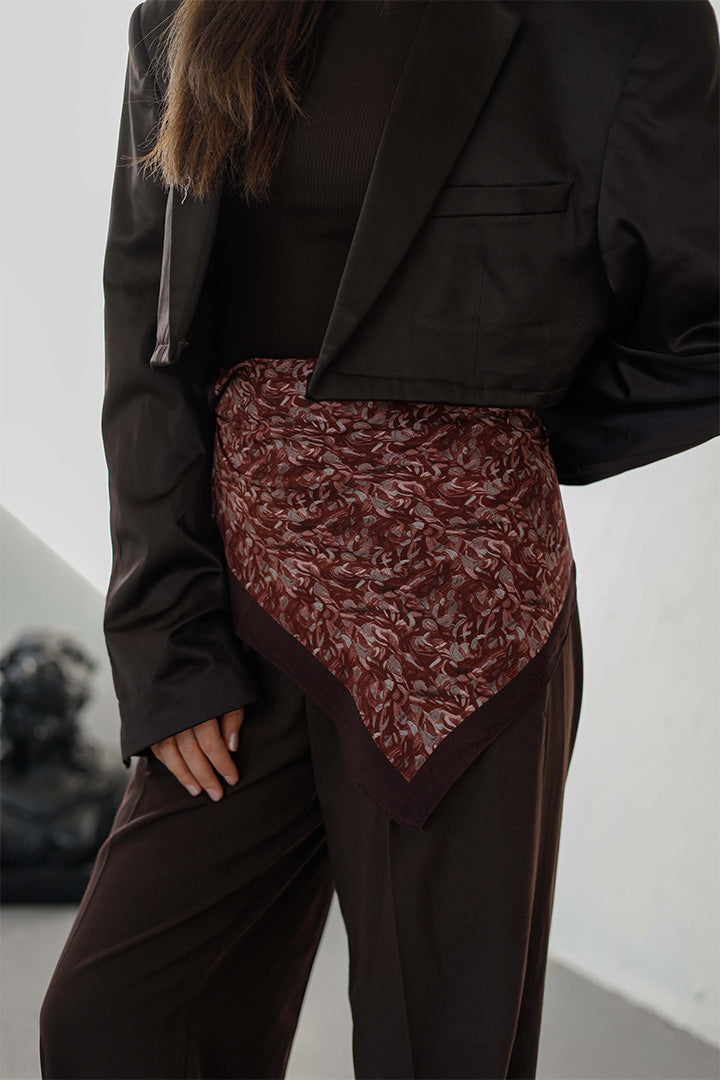 %100 Organik Pamuk Fular Yaprak Desen Koyu Bordo