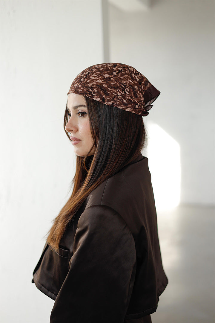%100 Organik Pamuk Fular Yaprak Desen Koyu Kahverengi