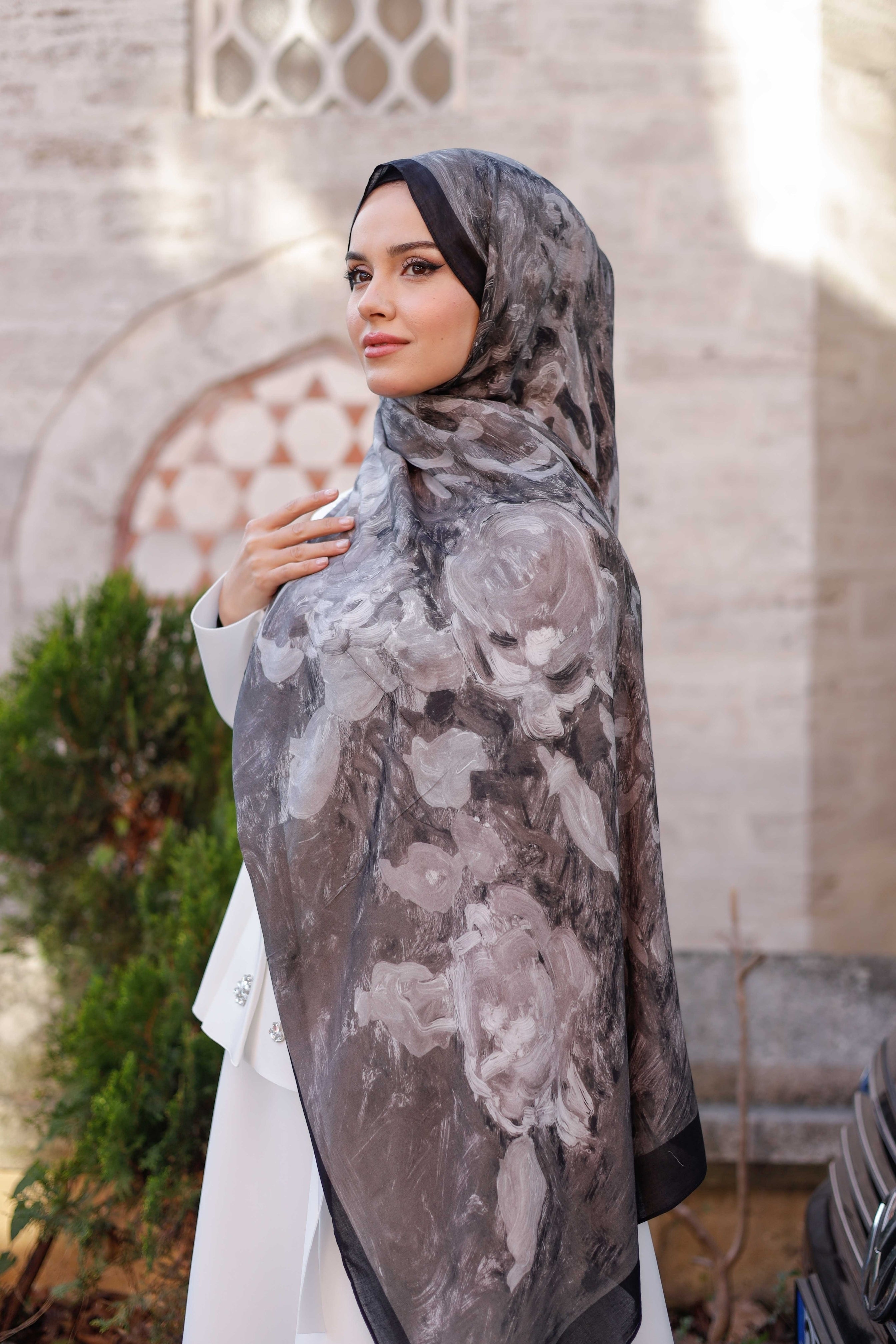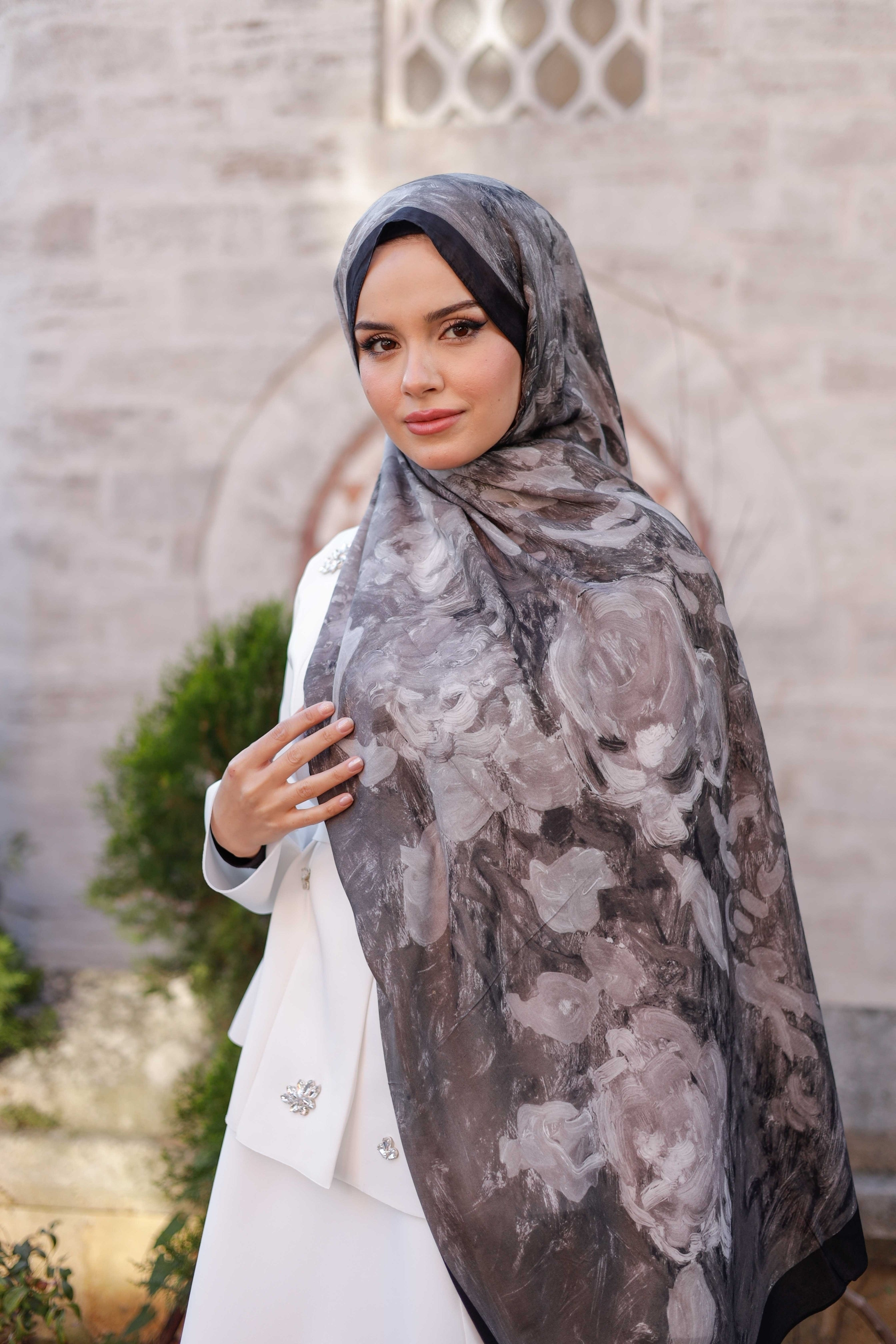 %100 Organik Pamuk Şal Rose Desen Füme