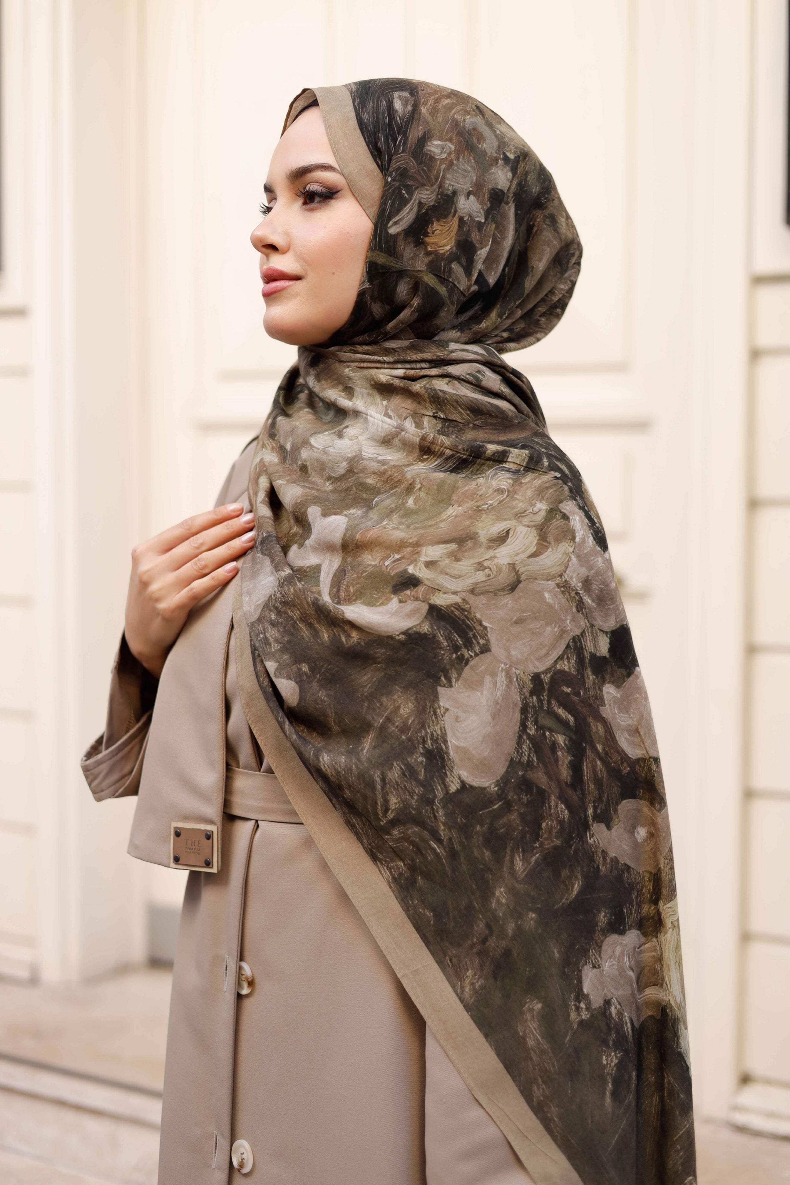 %100 Organik Pamuk Şal Rose Desen Haki Yeşili