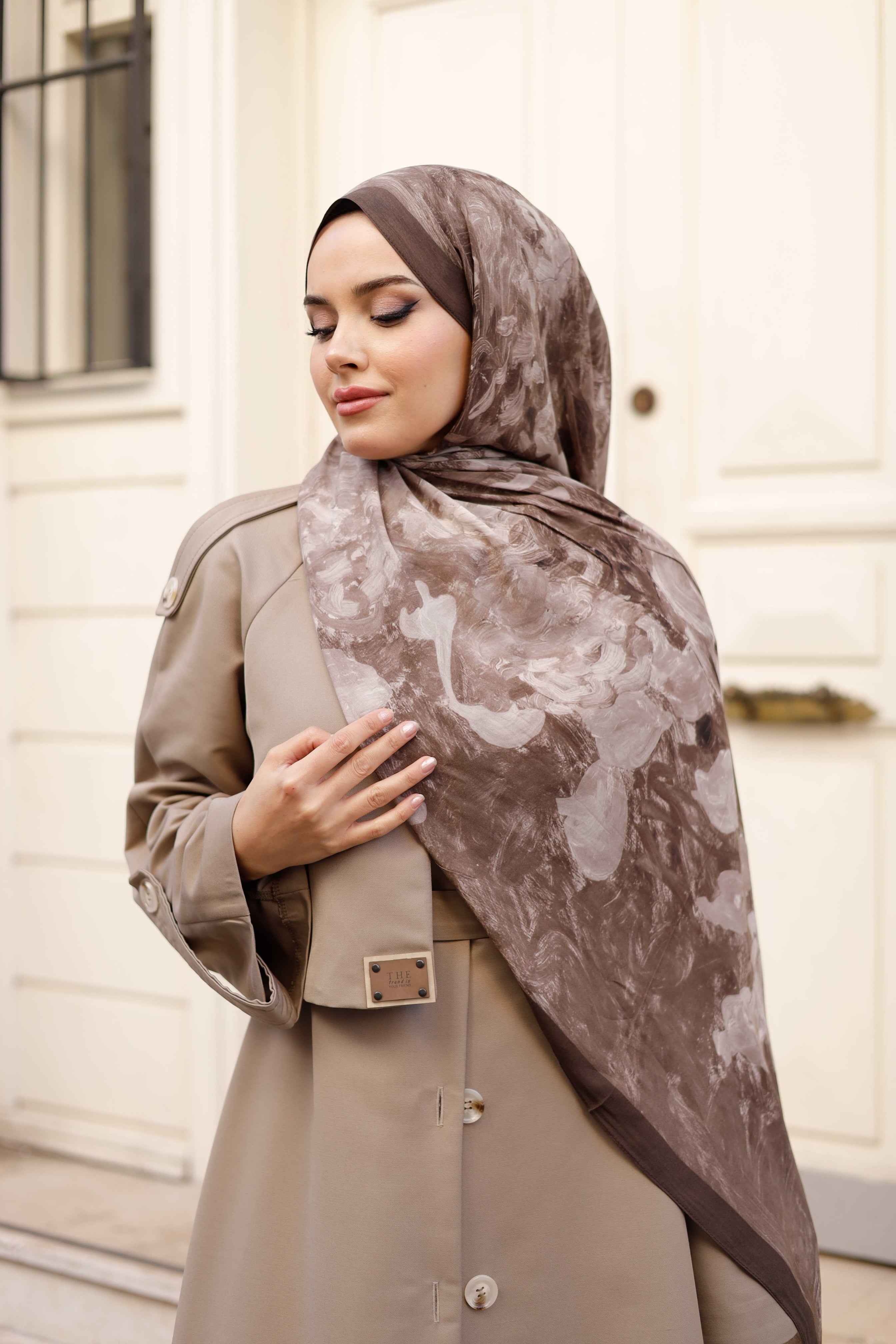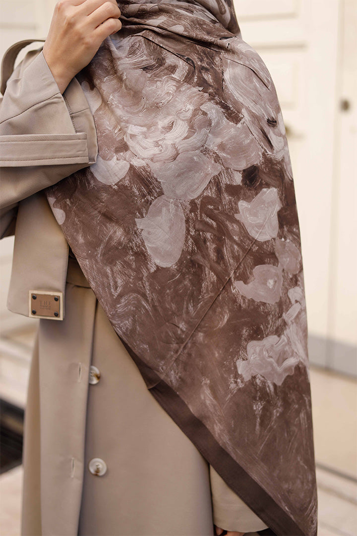 %100 Organik Pamuk Şal Rose Desen Kahverengi
