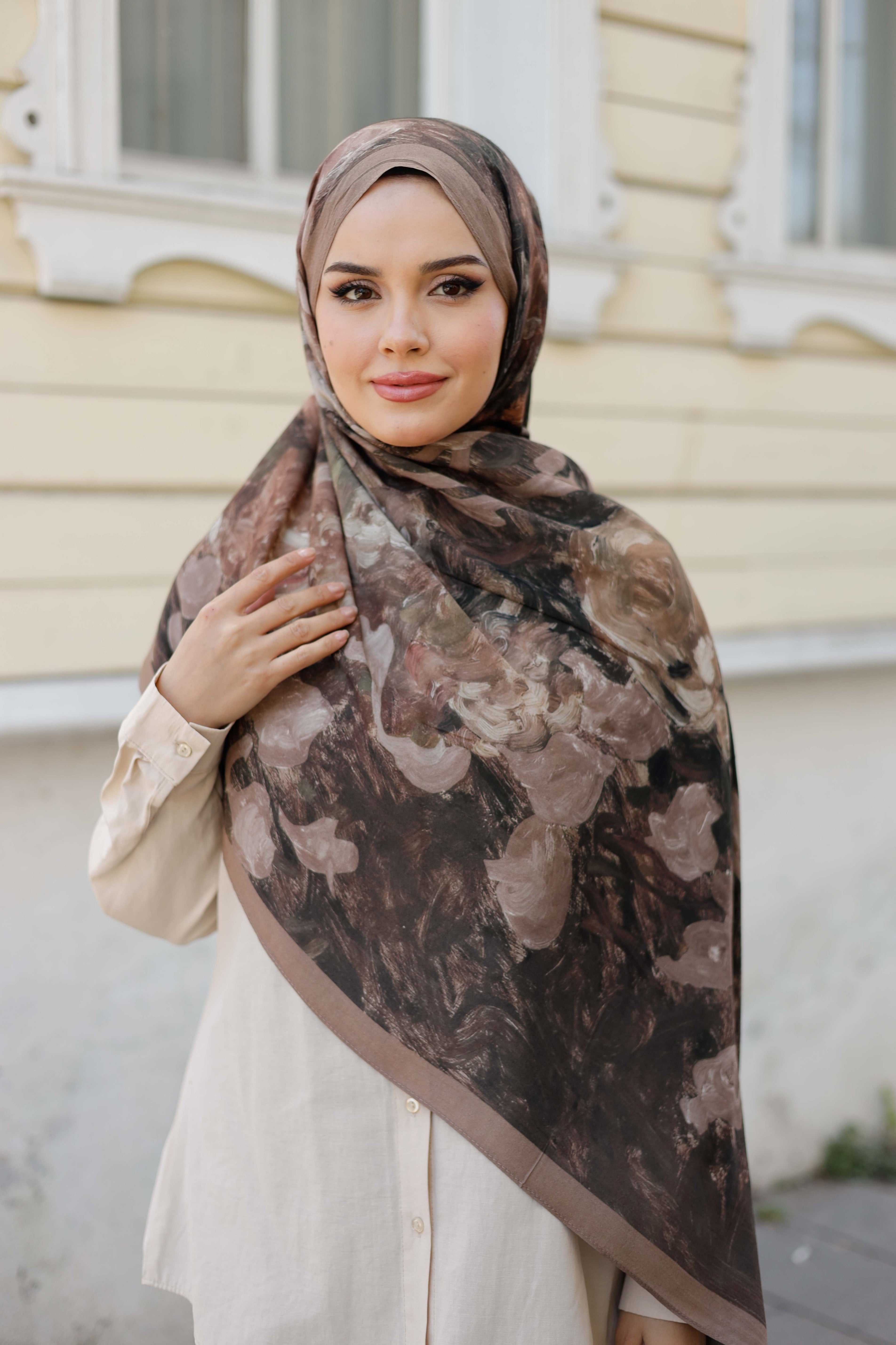 %100 Organik Pamuk Şal Rose Desen Koyu Kahve