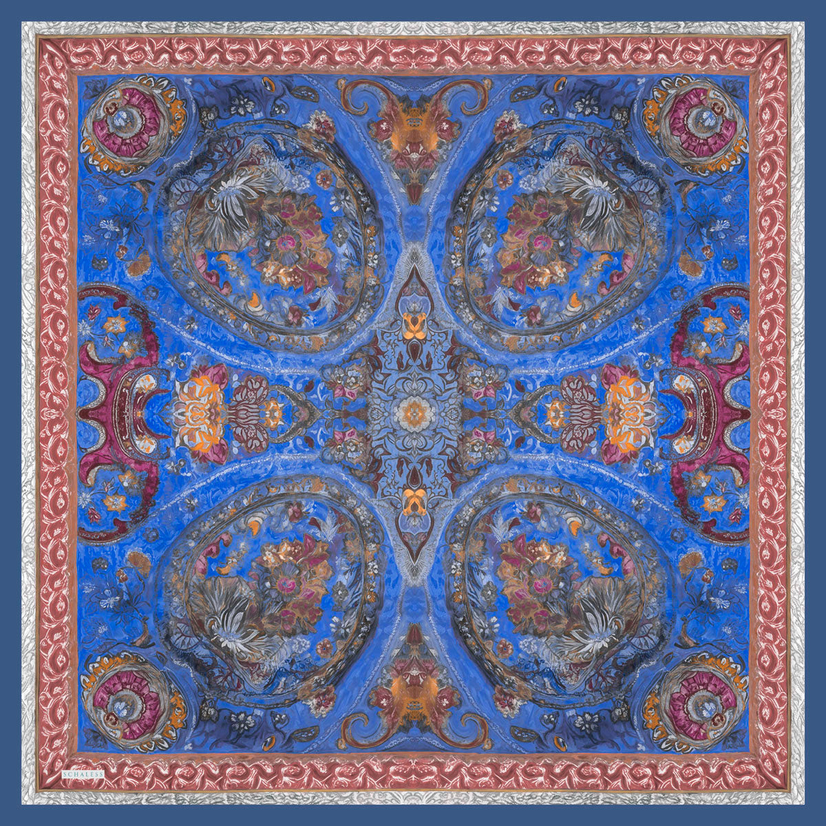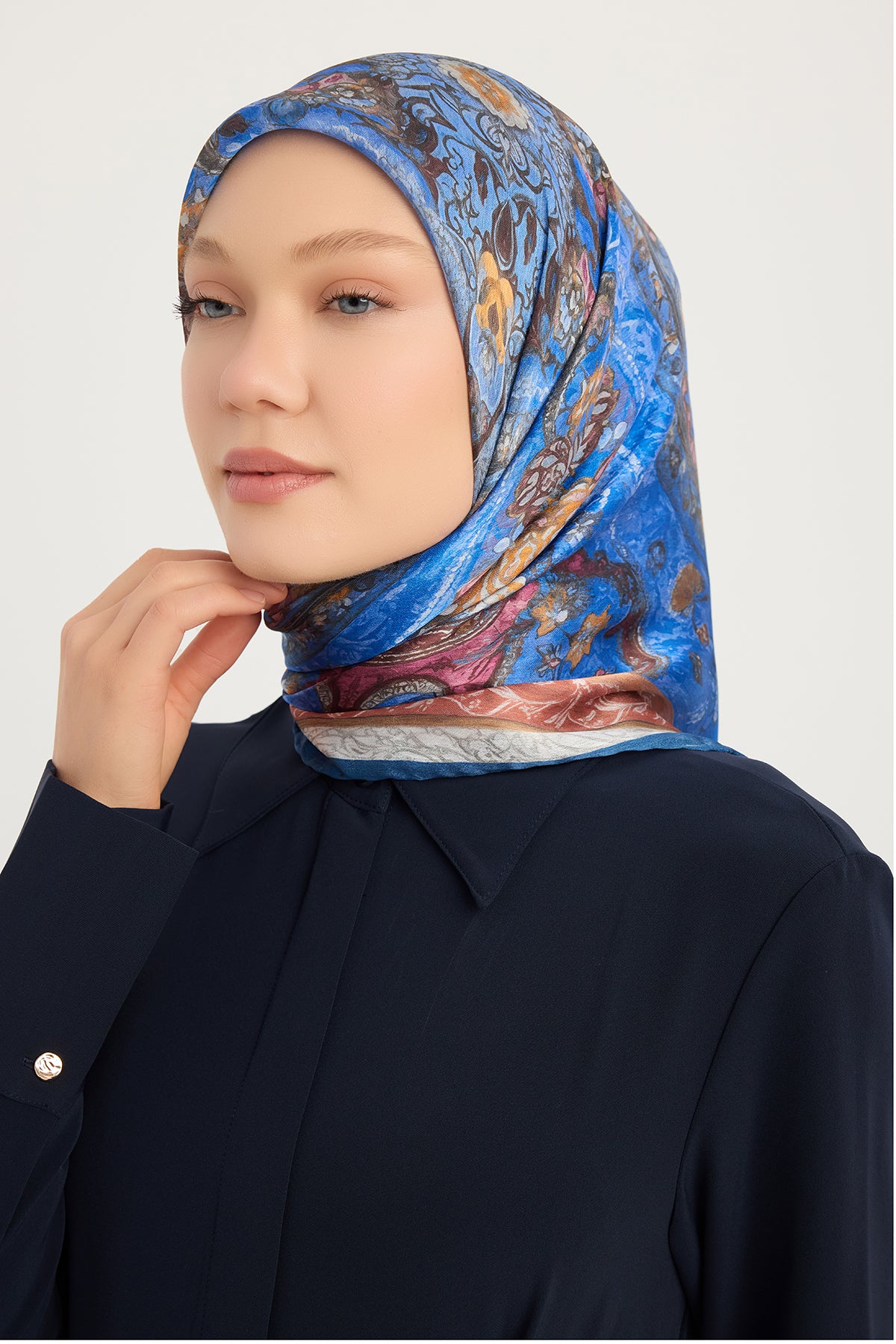 Aurora Desenli Janjan Eşarp Altın Bahçe İndigo