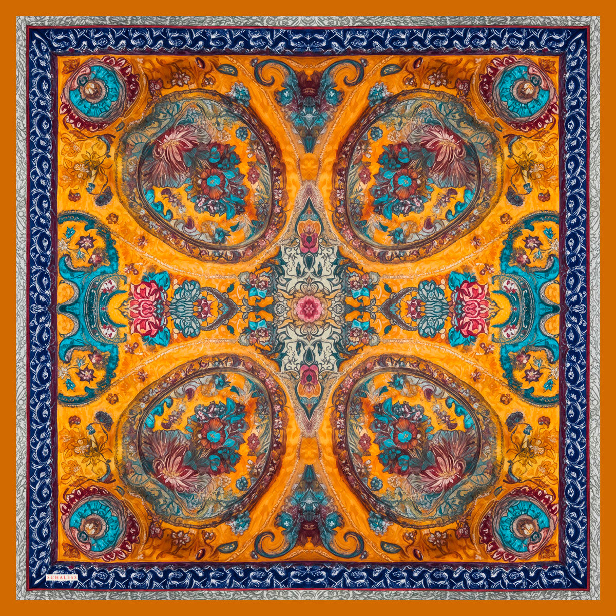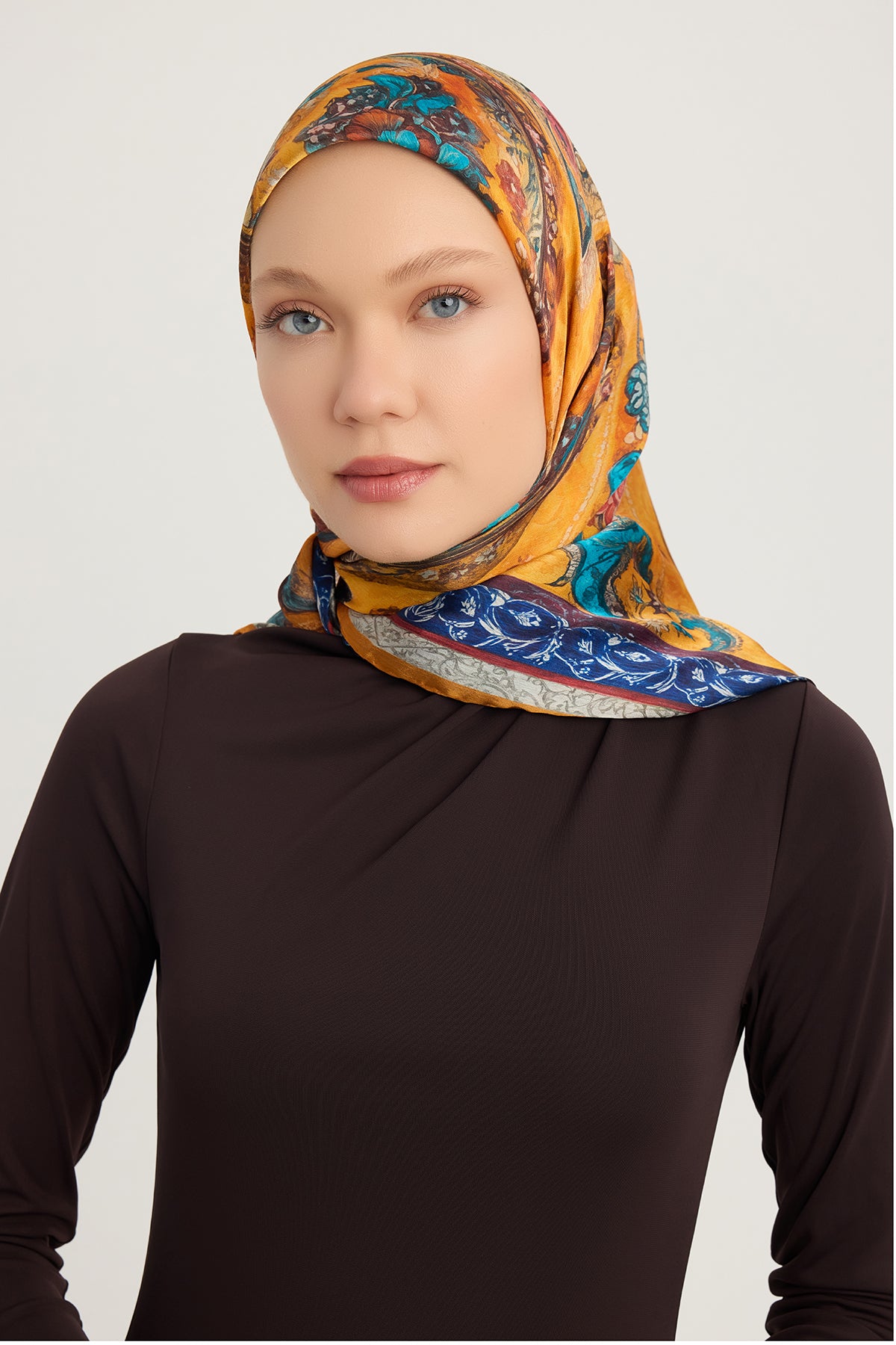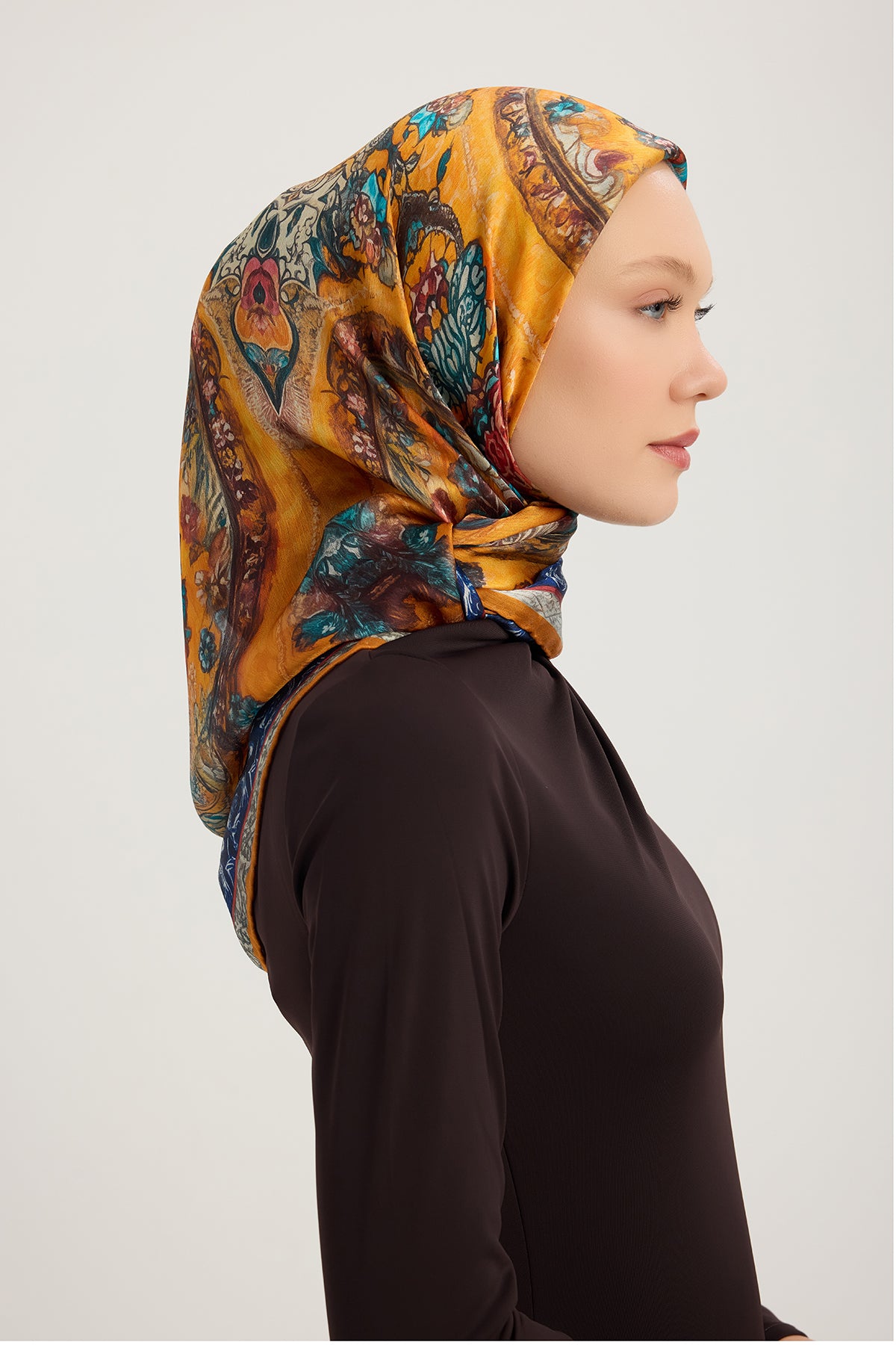Aurora Desenli Janjan Eşarp Altın Bahçe Turuncu