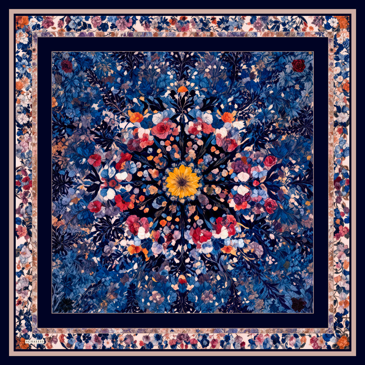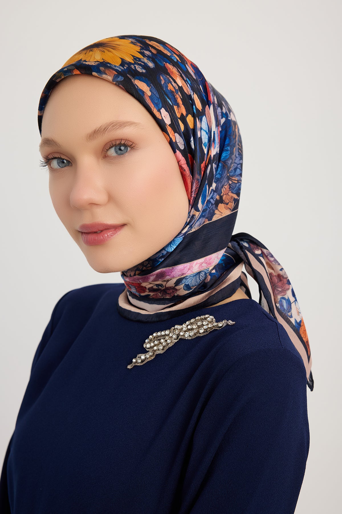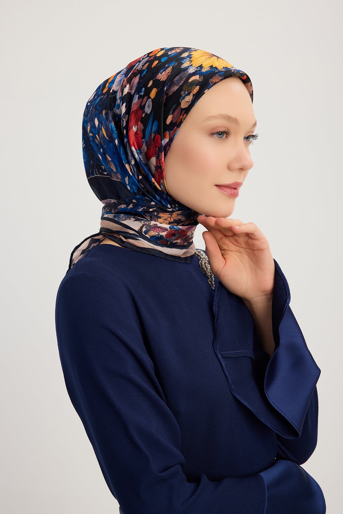 Aurora Desenli Janjan Eşarp Ritmik Çiçek Kozmosu Lacivert
