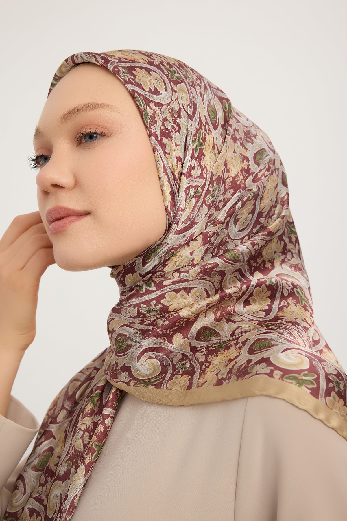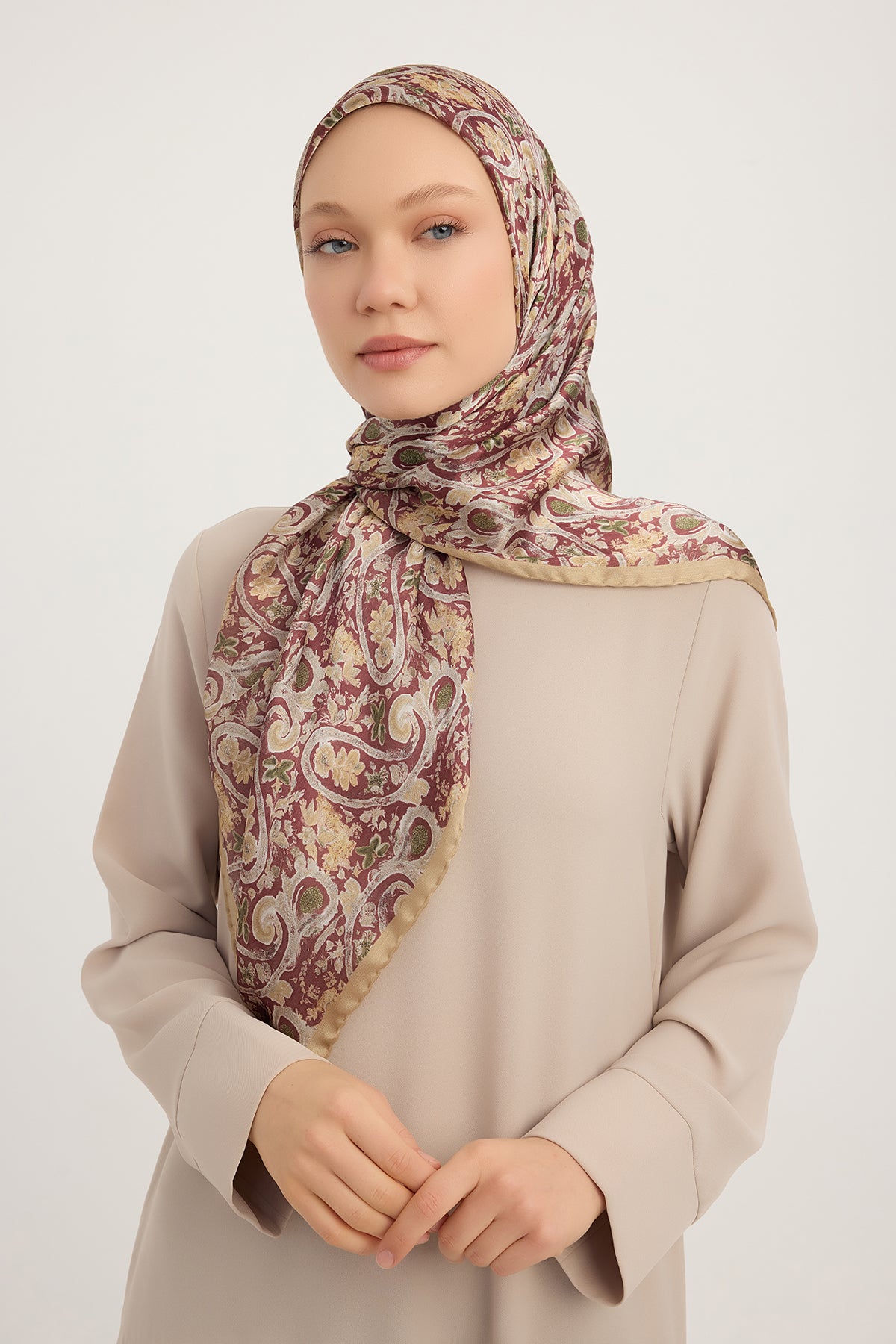 Aurora Desenli Janjan Eşarp Etnik Bahar Bordo