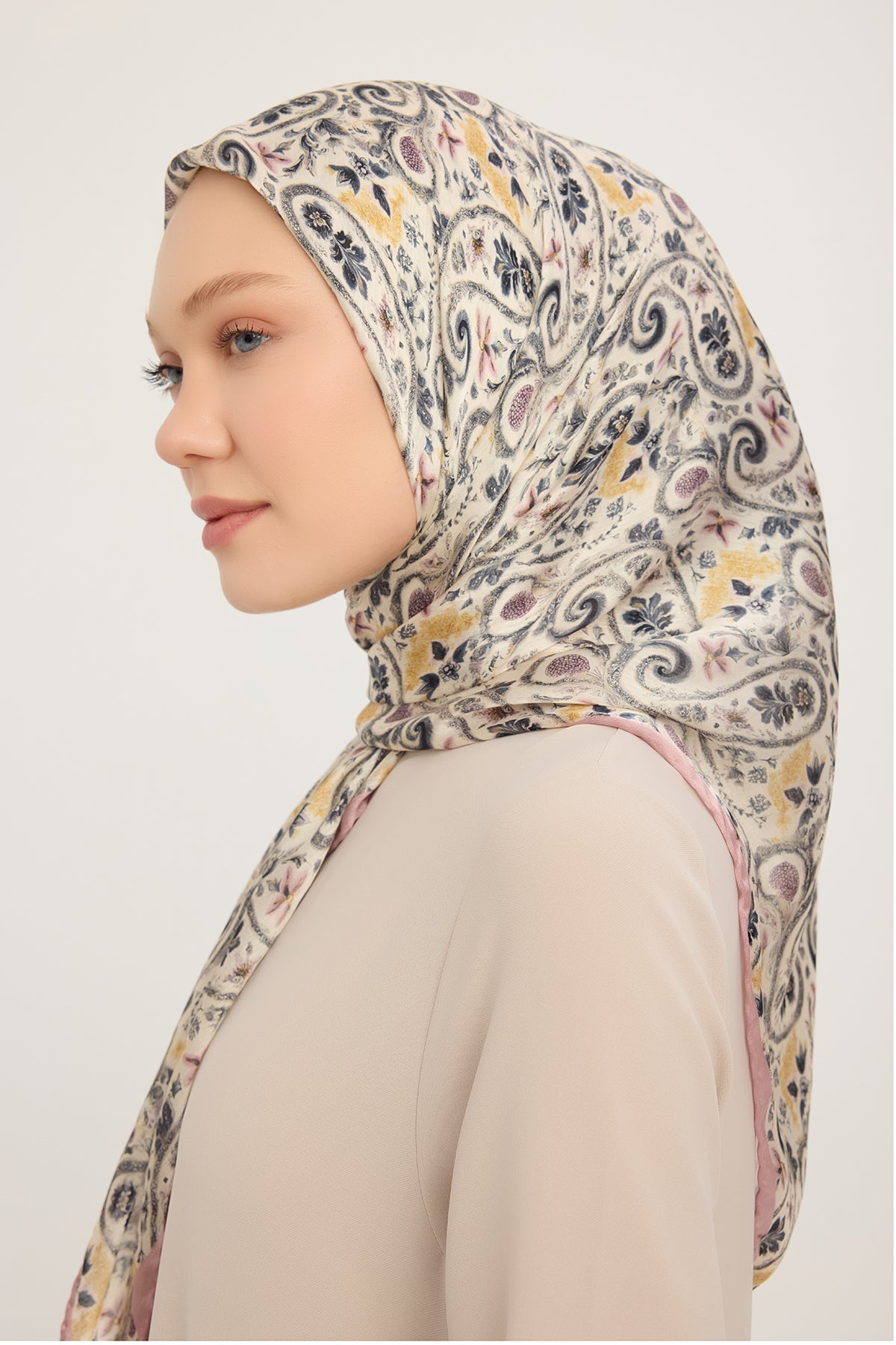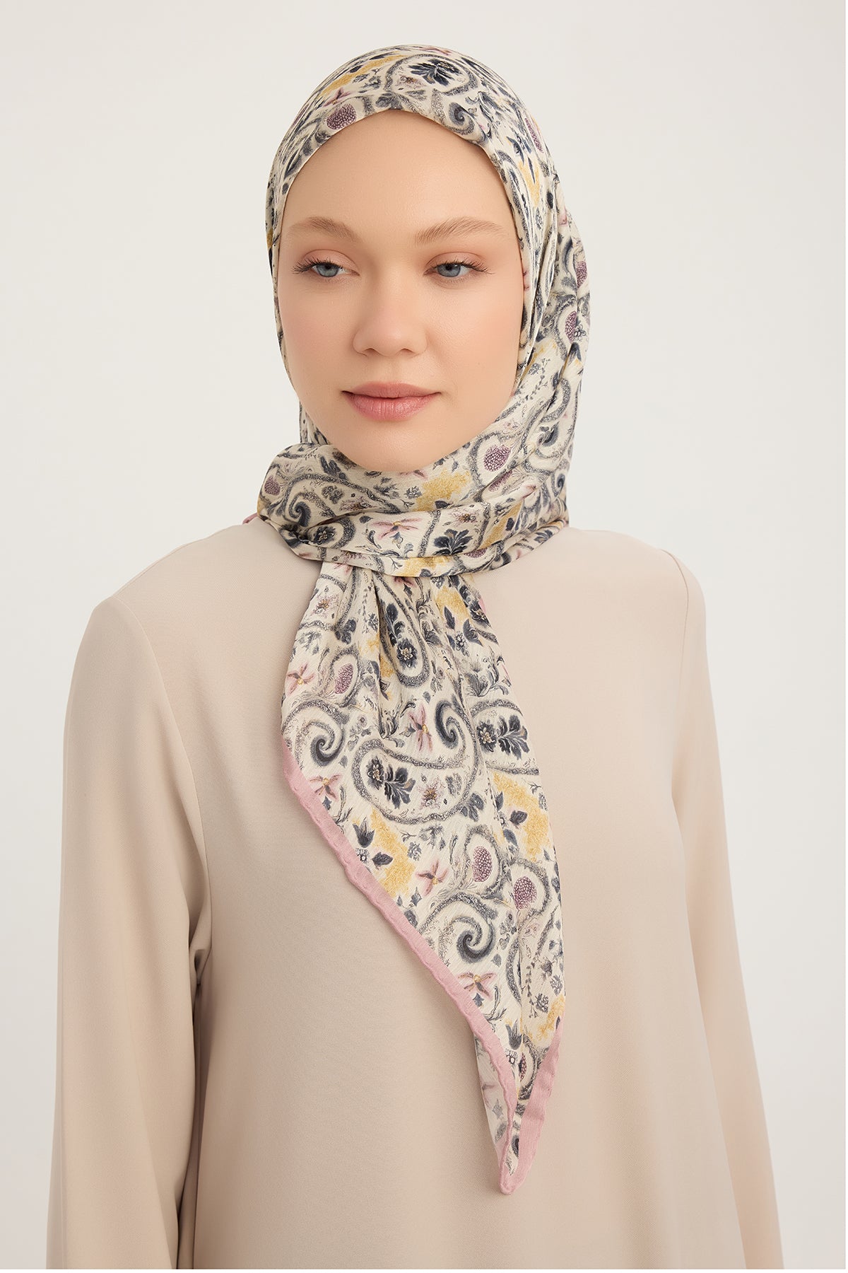 Aurora Desenli Janjan Eşarp Etnik Bahar Pudra