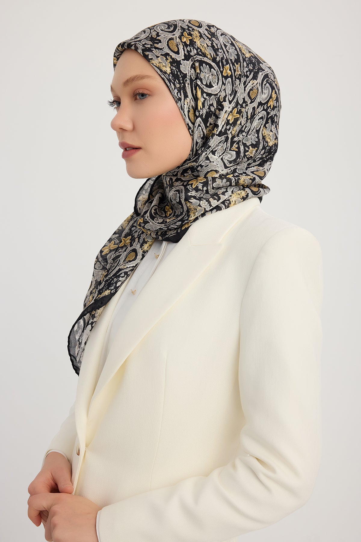 Aurora Desenli Janjan Eşarp Etnik Bahar Siyah