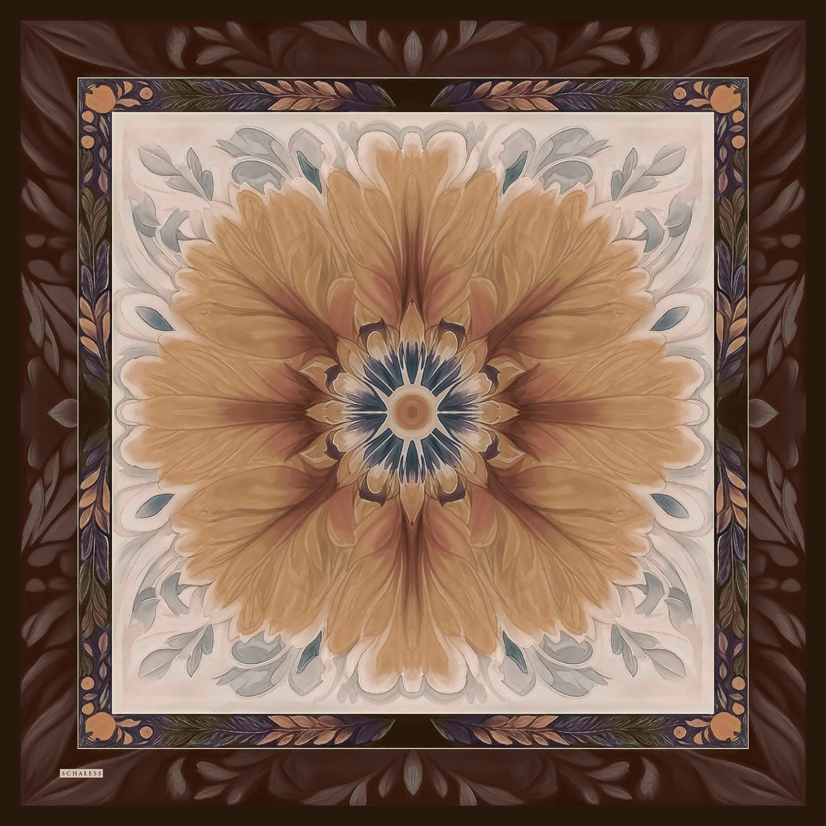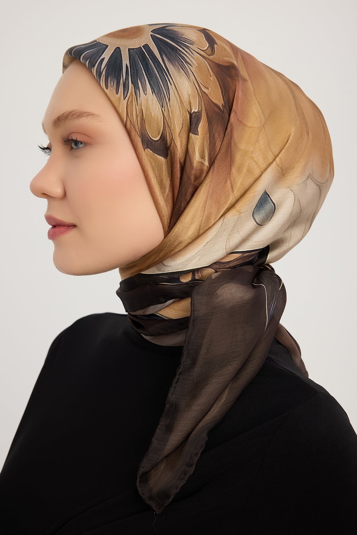 Aurora Desenli Janjan Eşarp Güneş Çiçeği Kahverengi