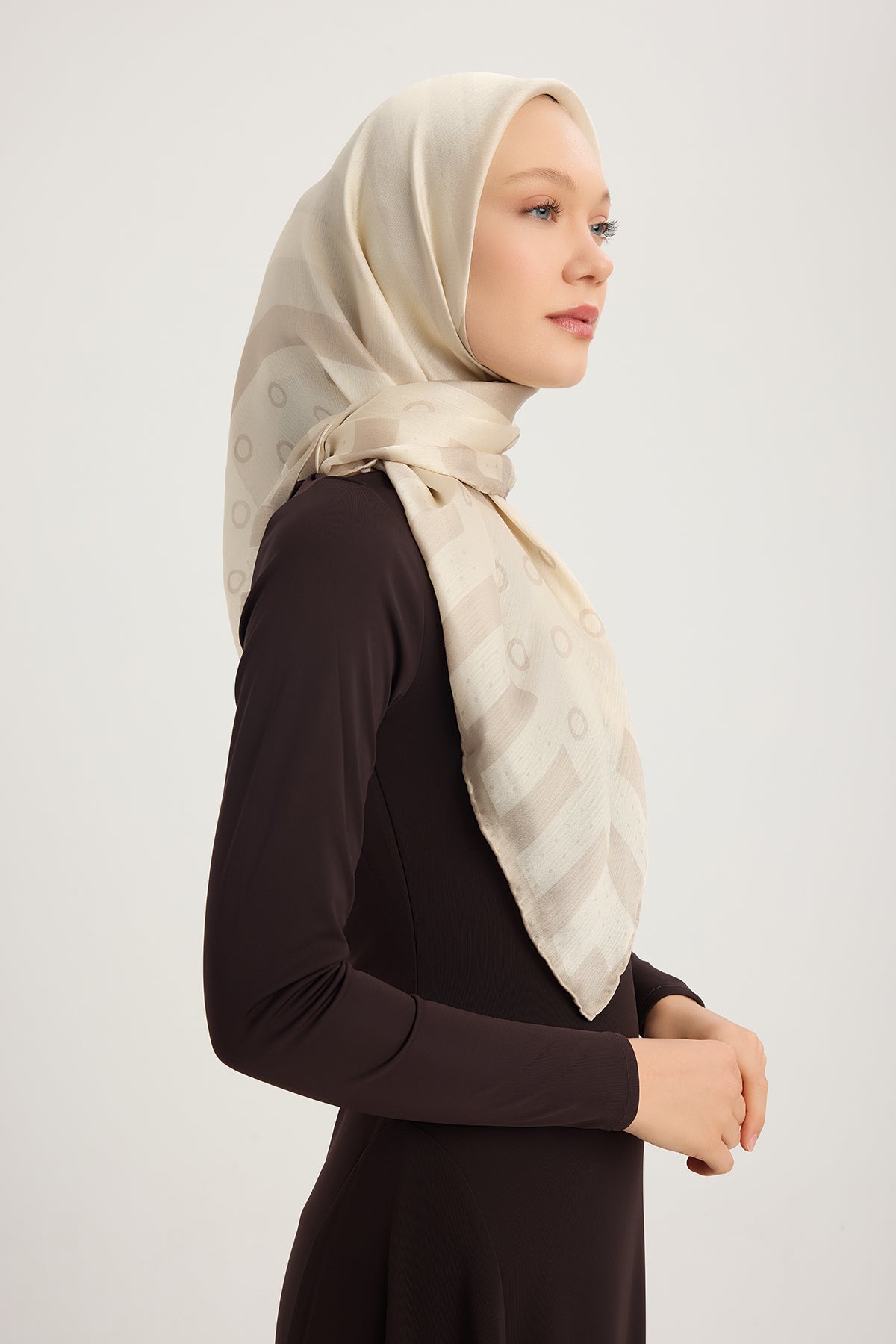 Aurora Desenli Janjan Eşarp Ritmik Geometri Açık Kahve