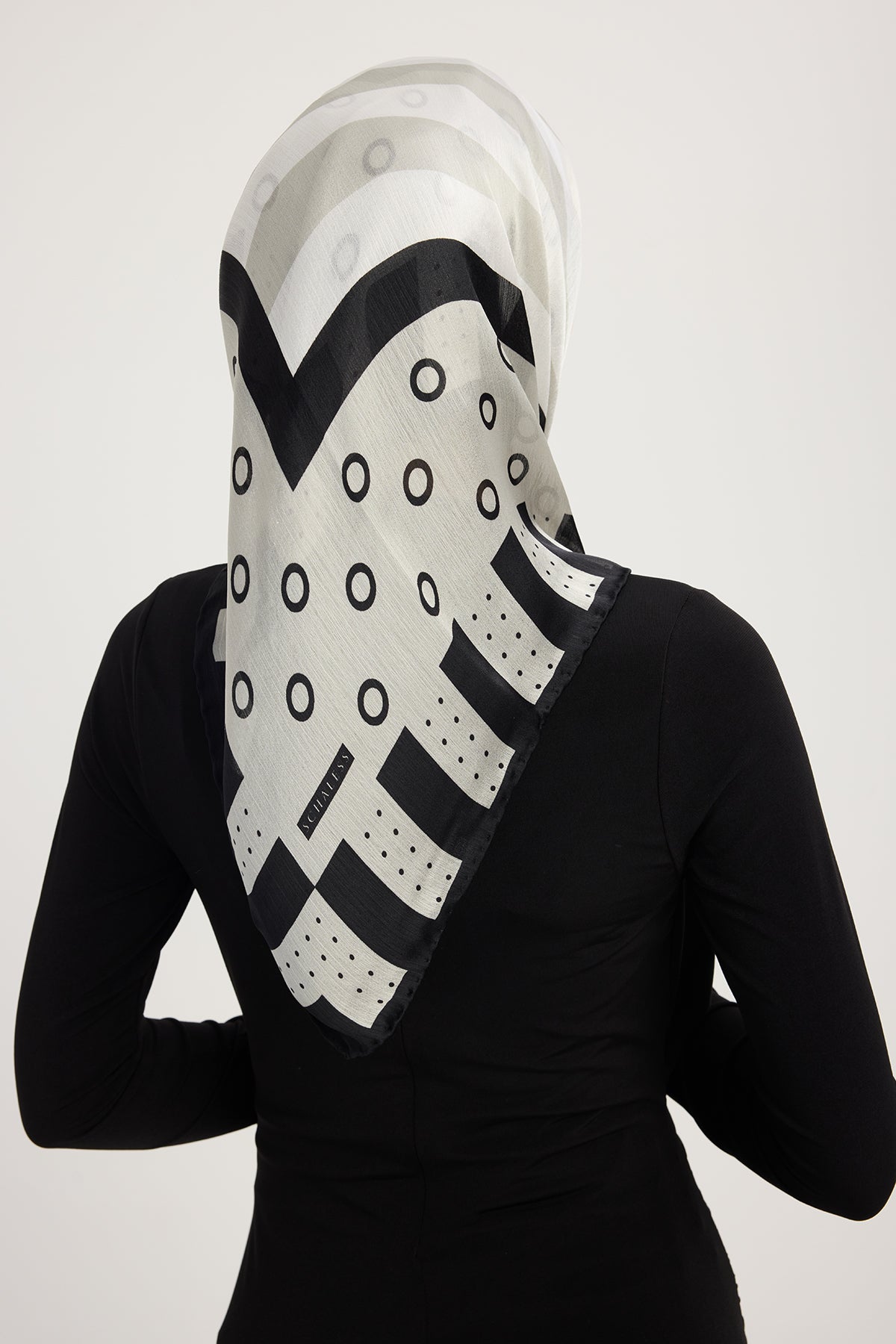 Aurora Desenli Janjan Eşarp Ritmik Geometri Gri