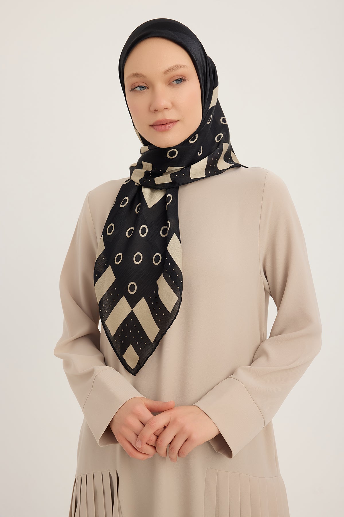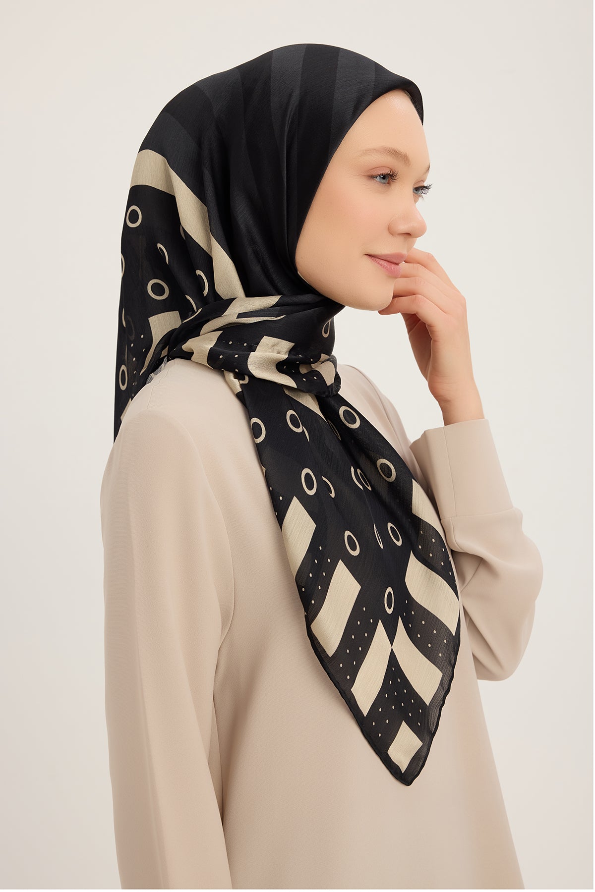 Aurora Desenli Janjan Eşarp Ritmik Geometri Siyah