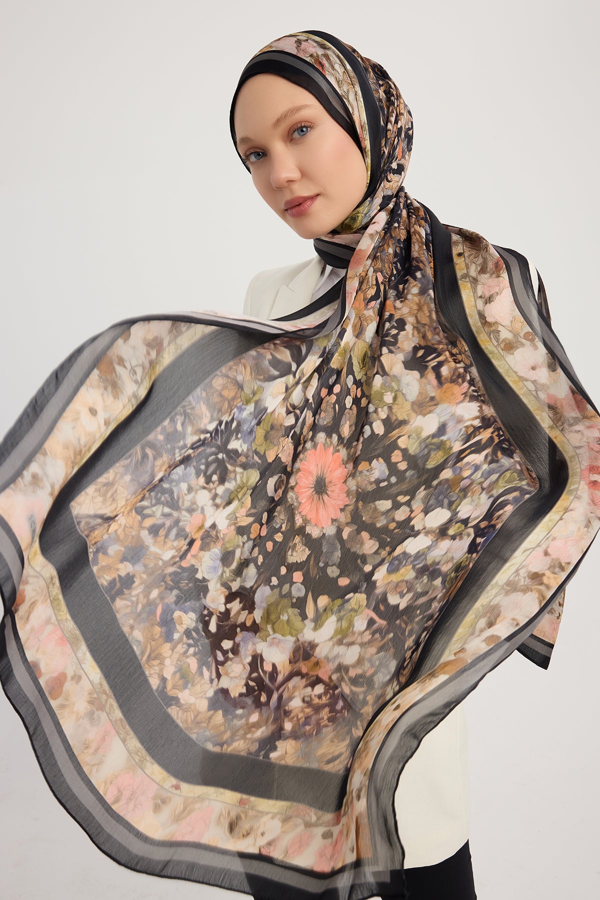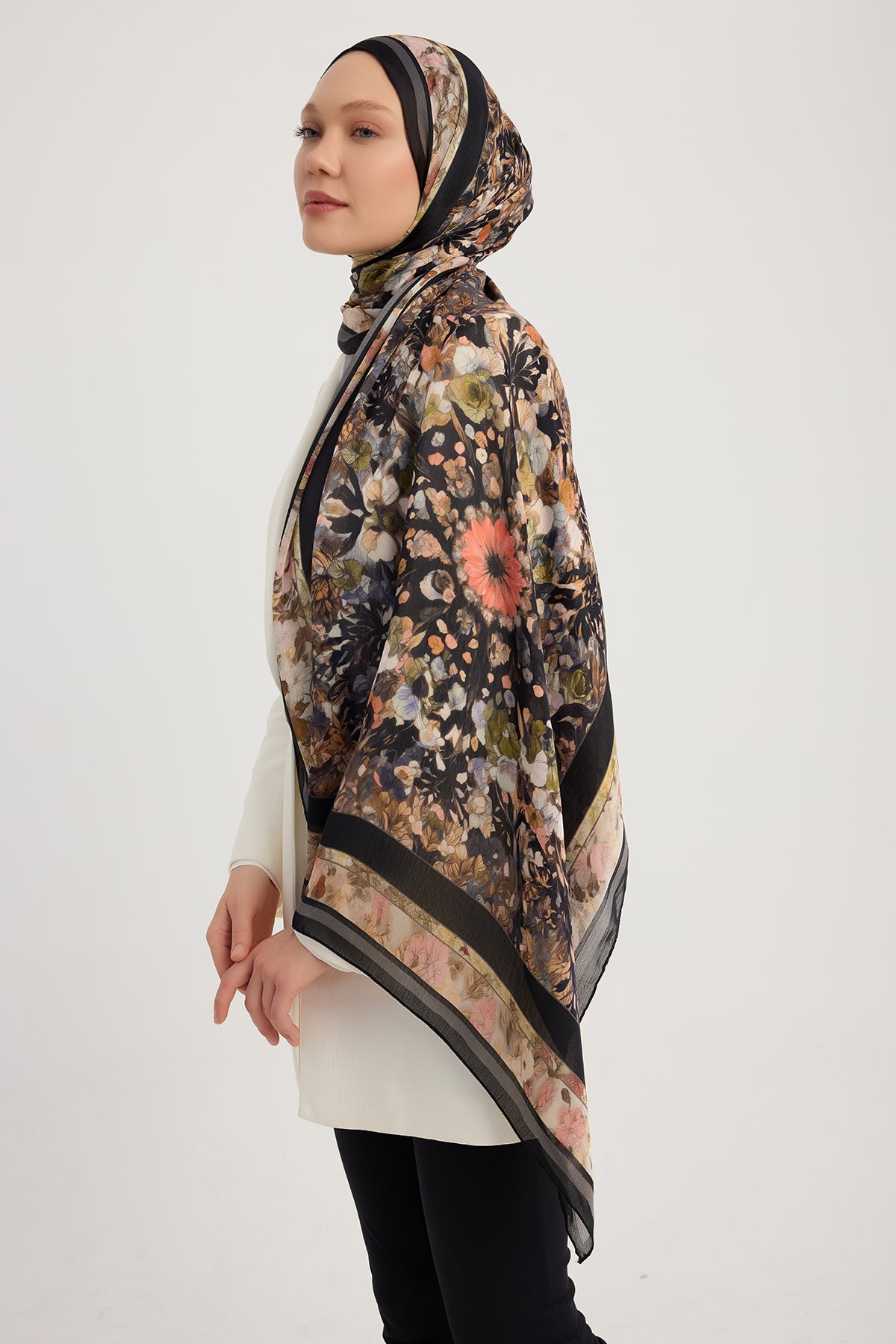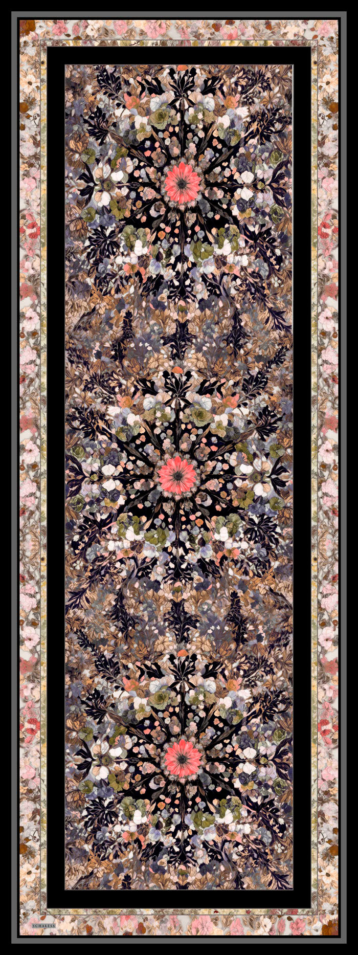 Aurora Desenli Janjan Şal Çiçek Kozmosu Siyah