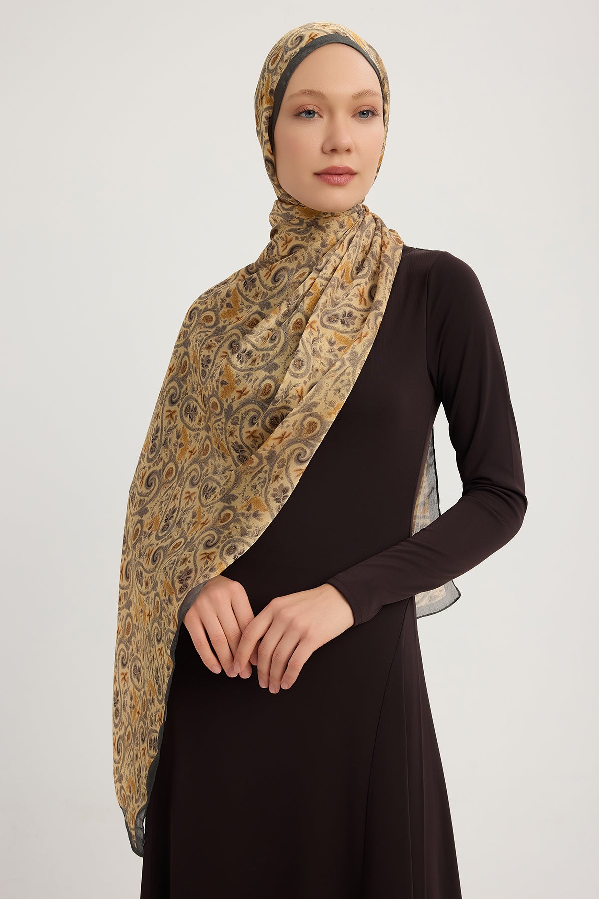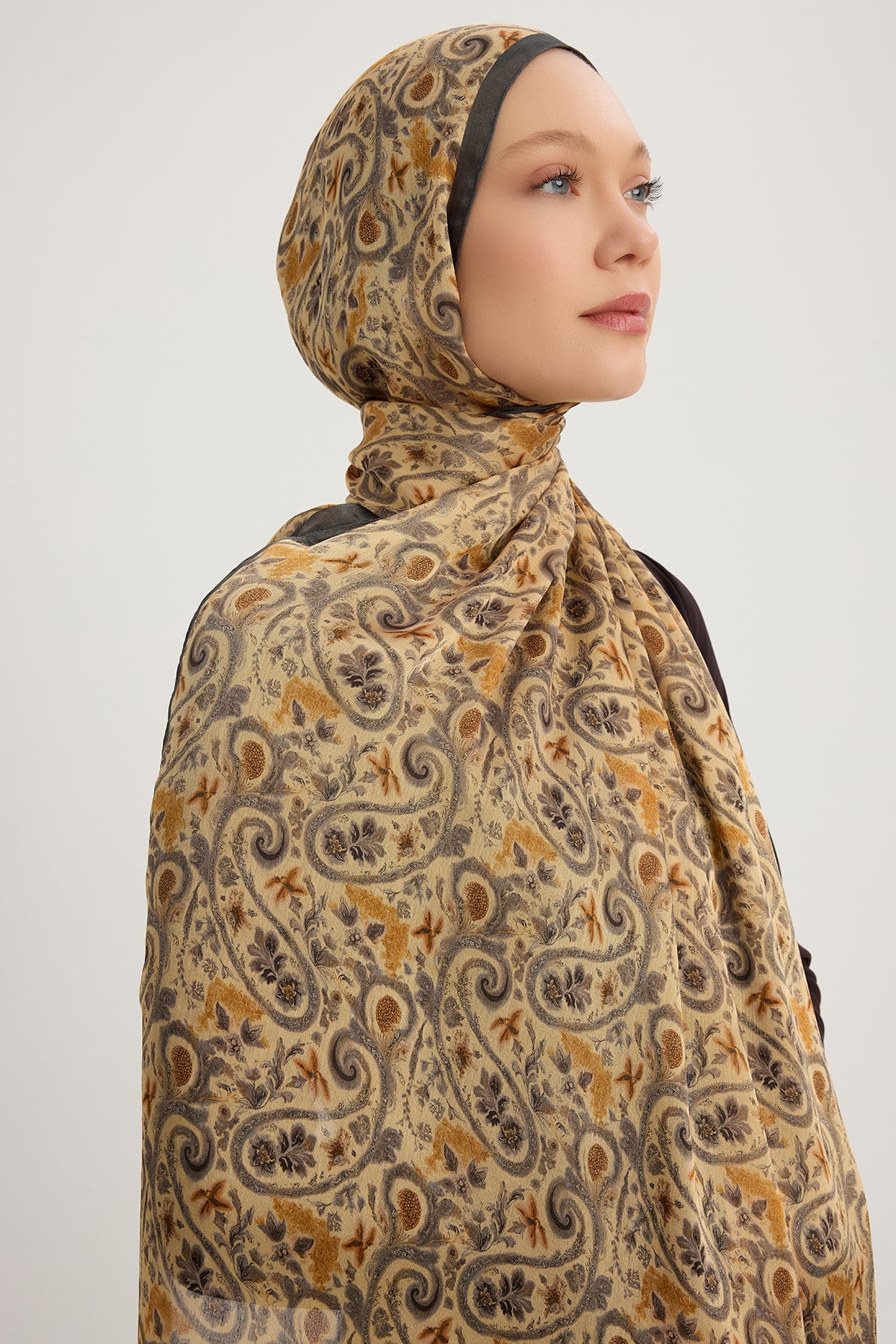 Aurora Desenli Janjan Şal Etnik Bahar Gri