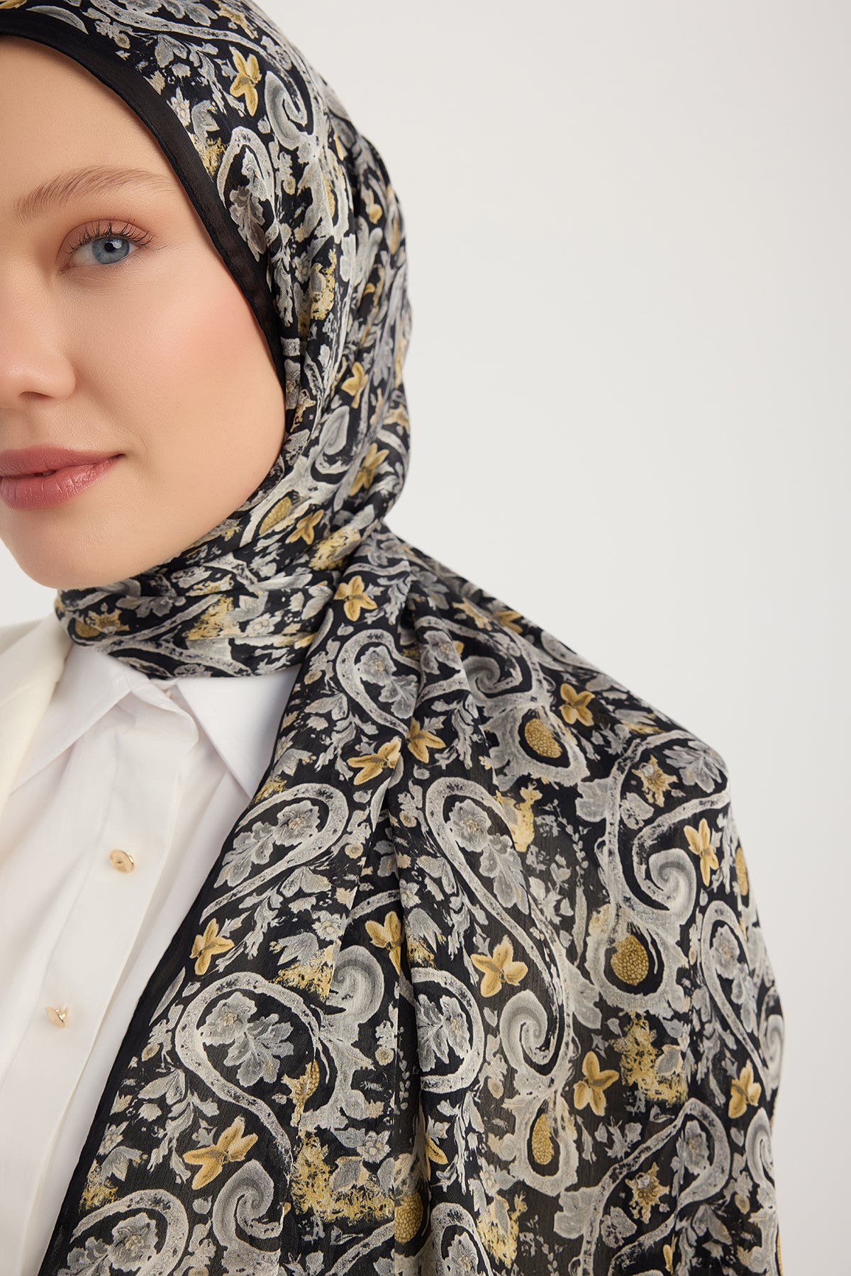 Aurora Desenli Janjan Şal Etnik Bahar Siyah