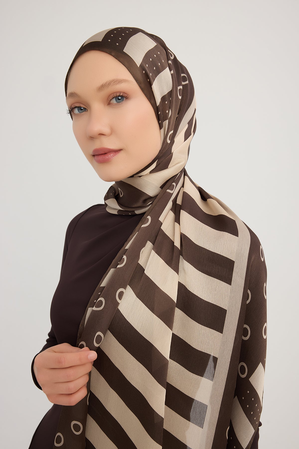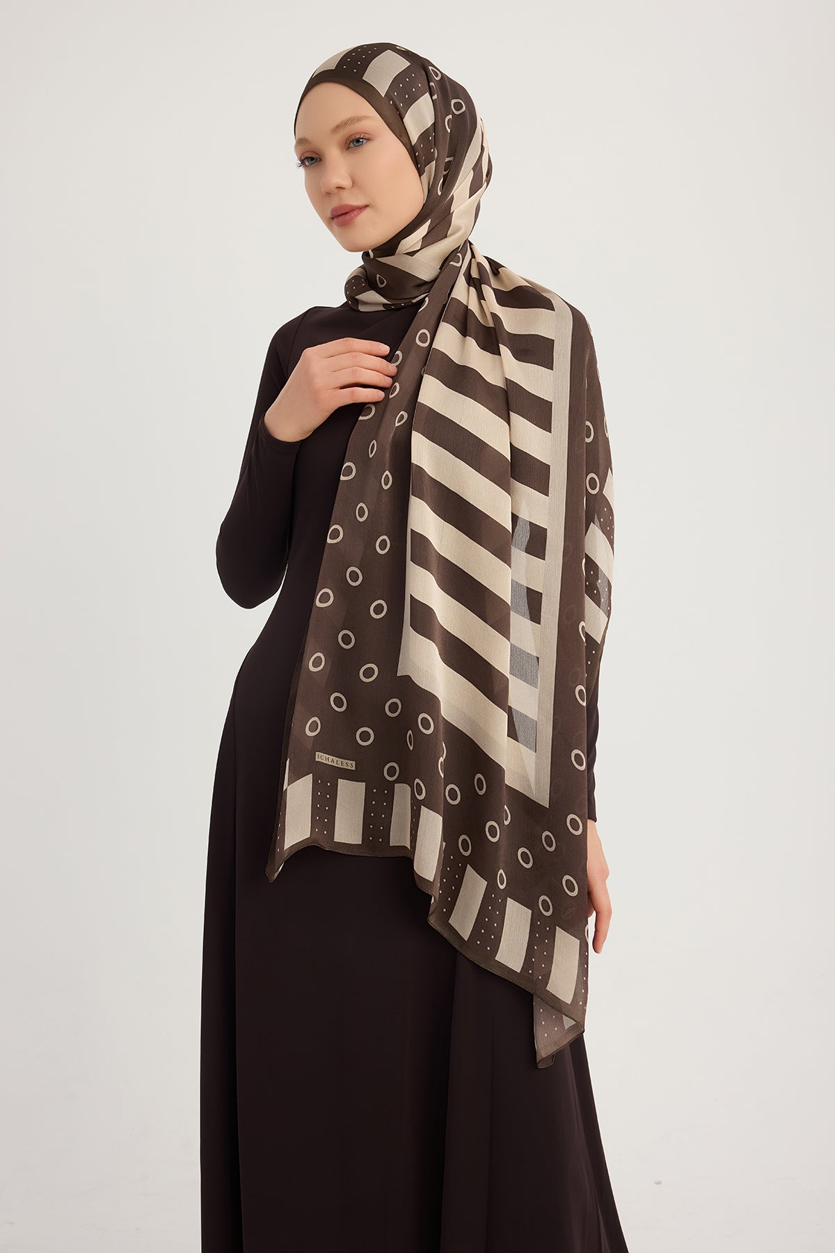 Aurora Desenli Janjan Şal Ritmik Geometri Kahverengi