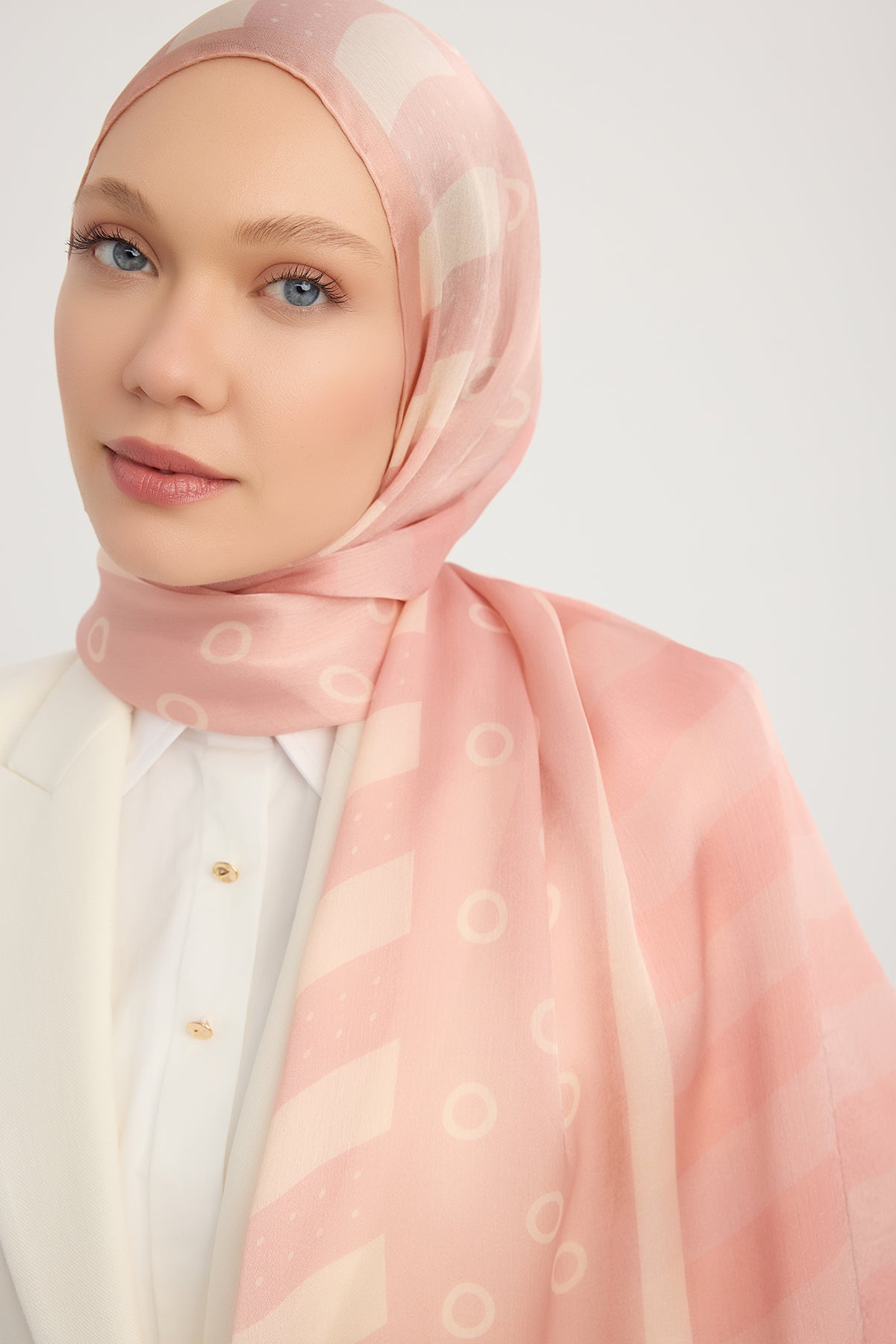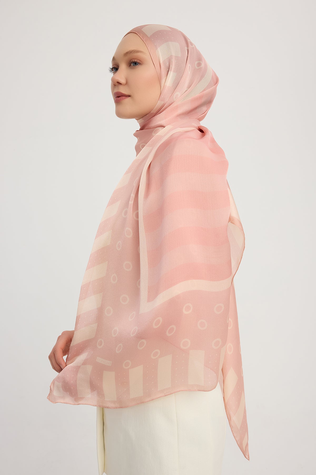 Aurora Desenli Janjan Şal Ritmik Geometri Pudra
