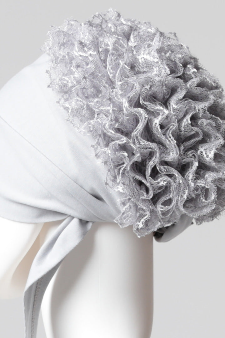 Gri Dikişsiz Dantel Topuzlu Bone Büyük Boy Pamuk Penye Özel Üretim