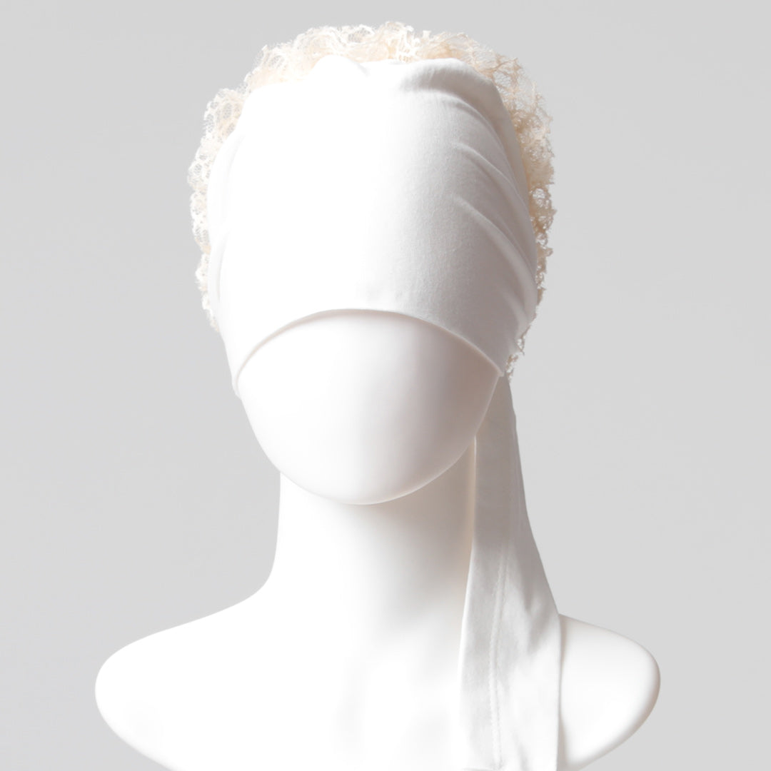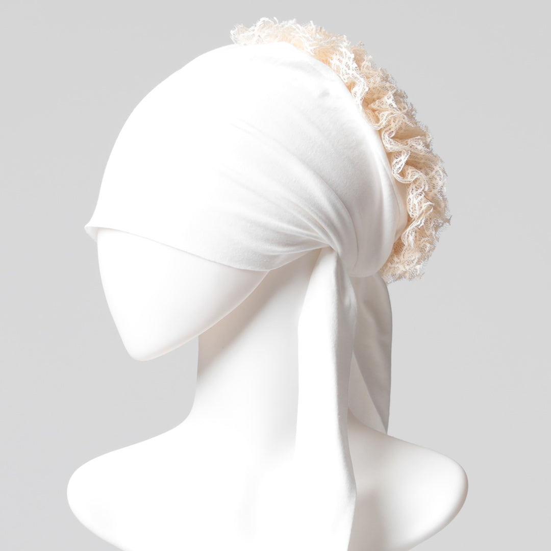 Krem Dikişsiz Dantel Topuzlu Bone Büyük Boy Pamuk Penye Özel Üretim