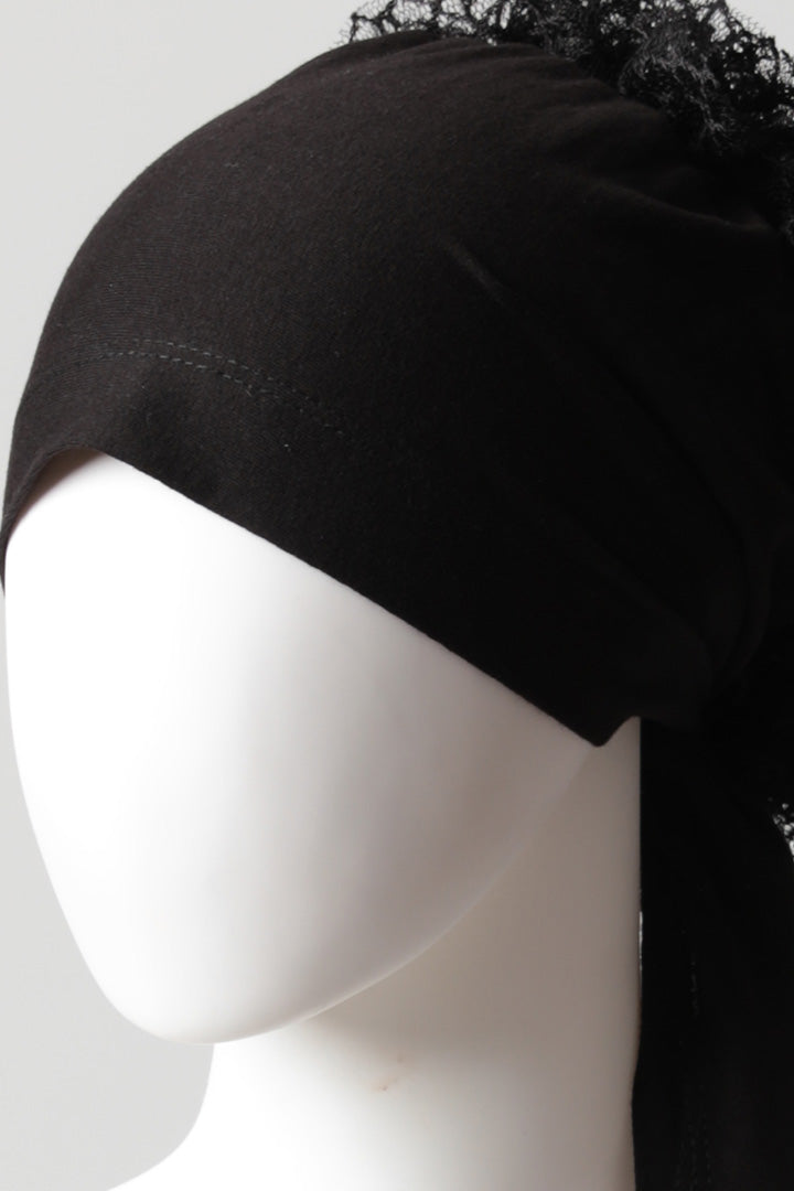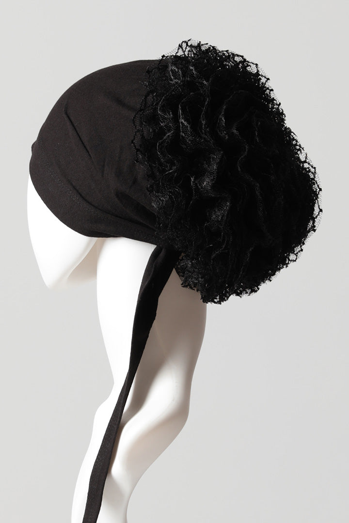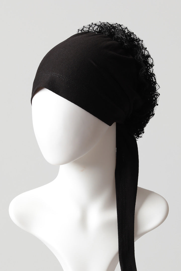 Dantel Topuzlu Önü Dikişli Bone - Kaliteli Özel Üretim - Siyah