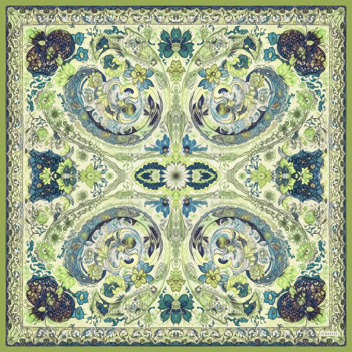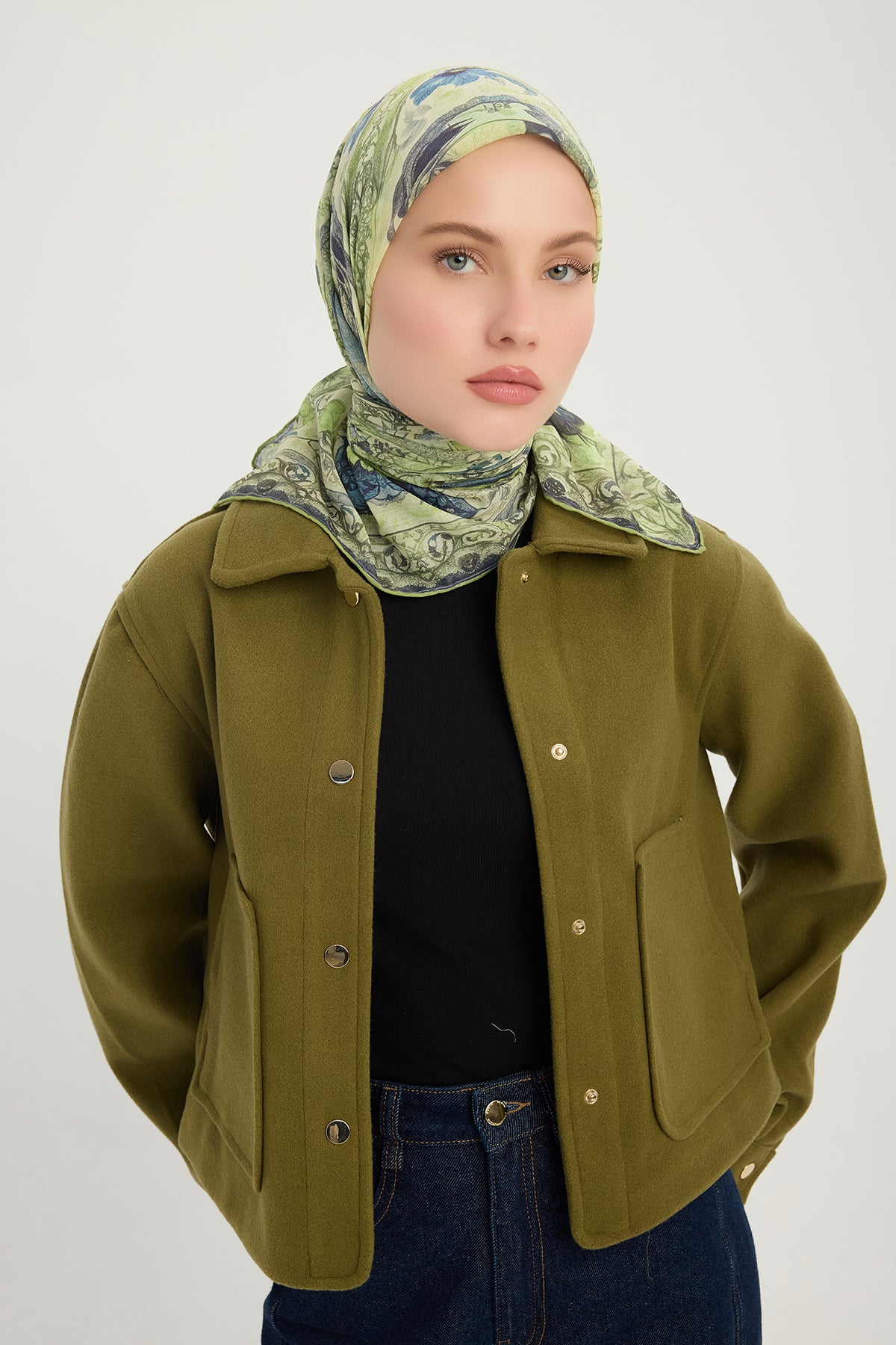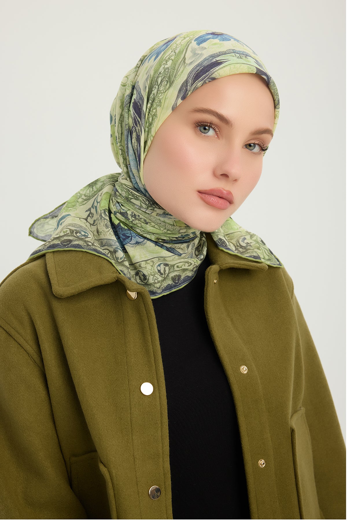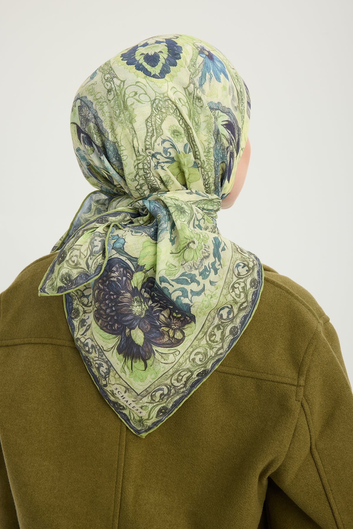 Efilia Desenli Eşarp Çiçek Tahtı Açık Yeşil