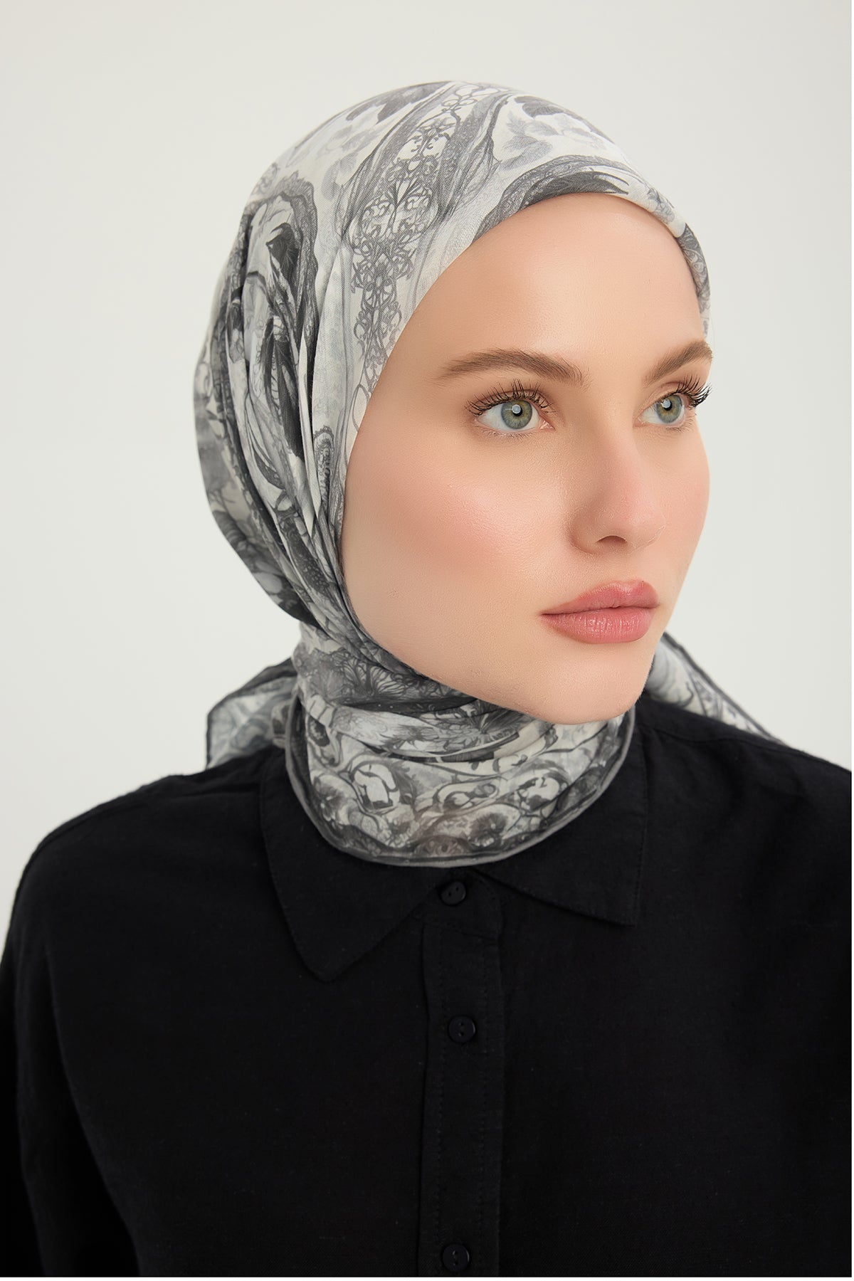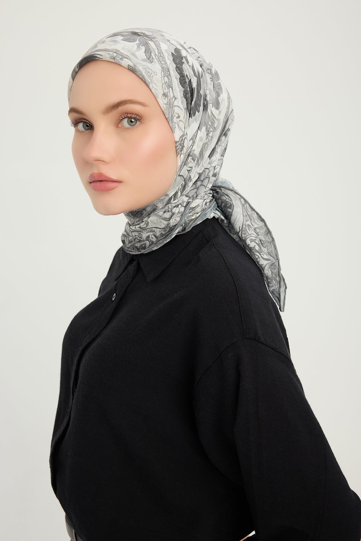 Efilia Desenli Eşarp Çiçek Tahtı Gri
