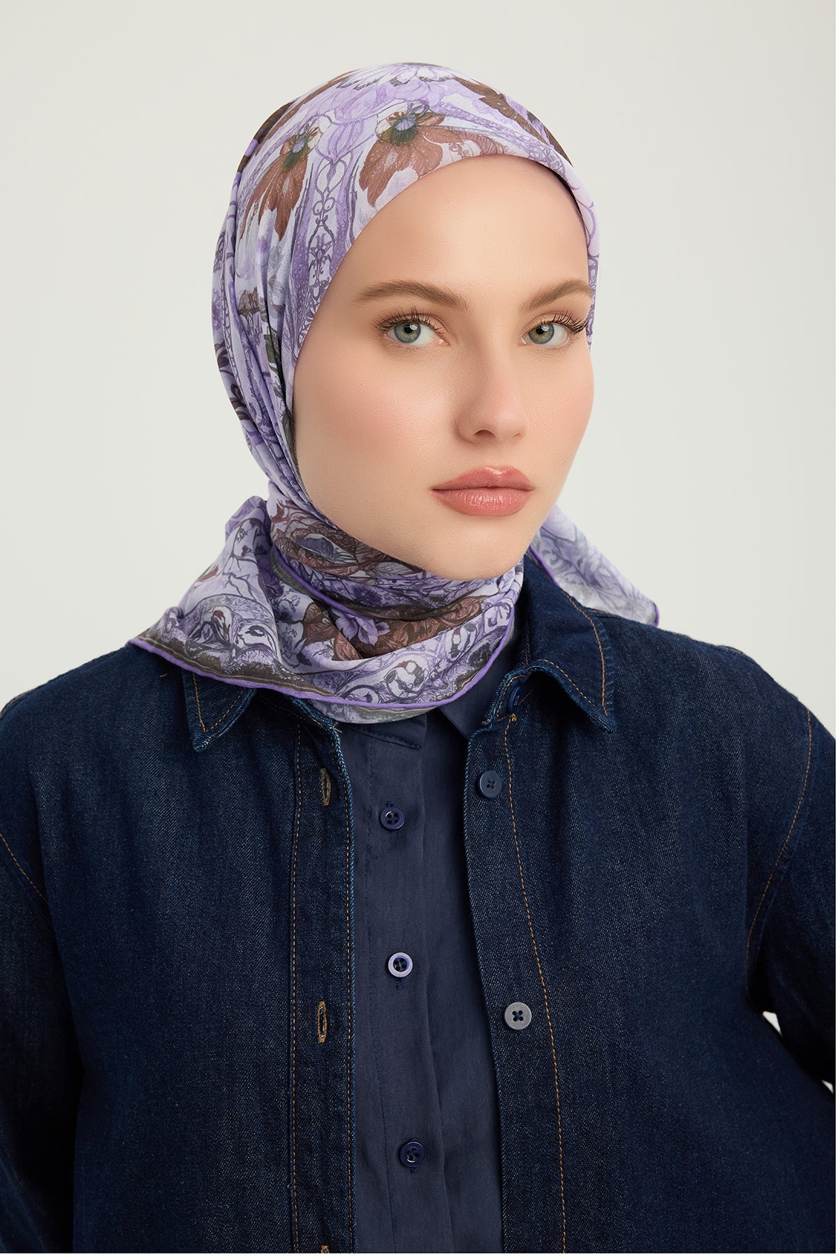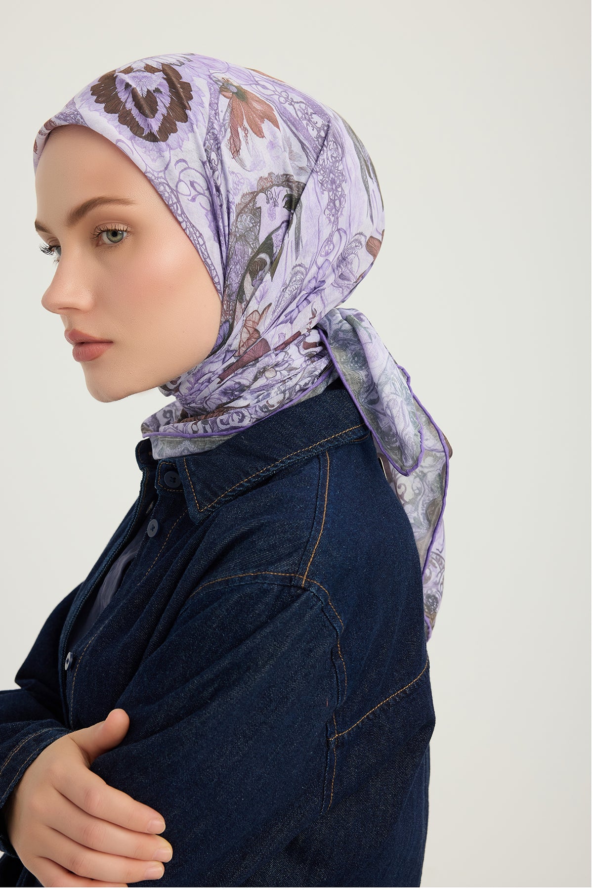 Efilia Desenli Eşarp Çiçek Tahtı Lila