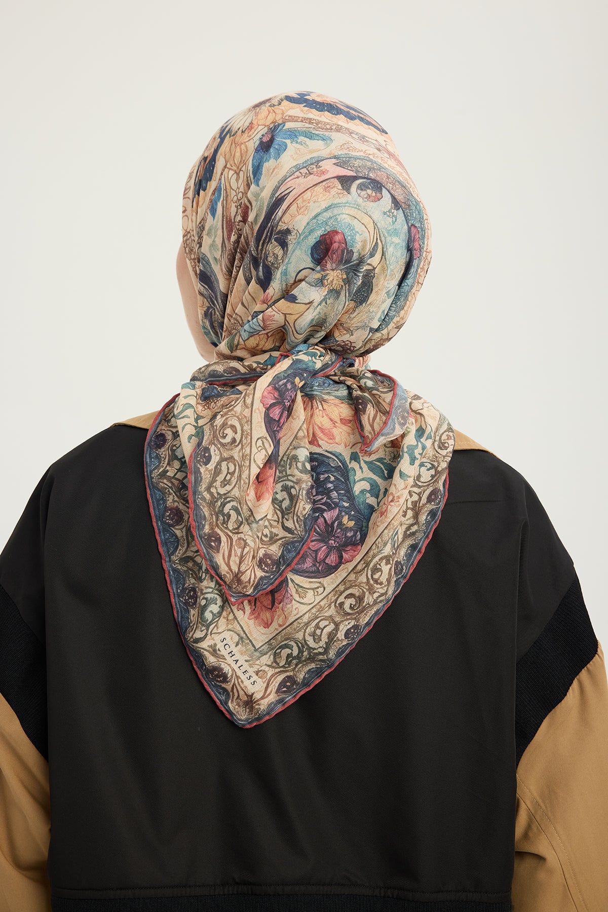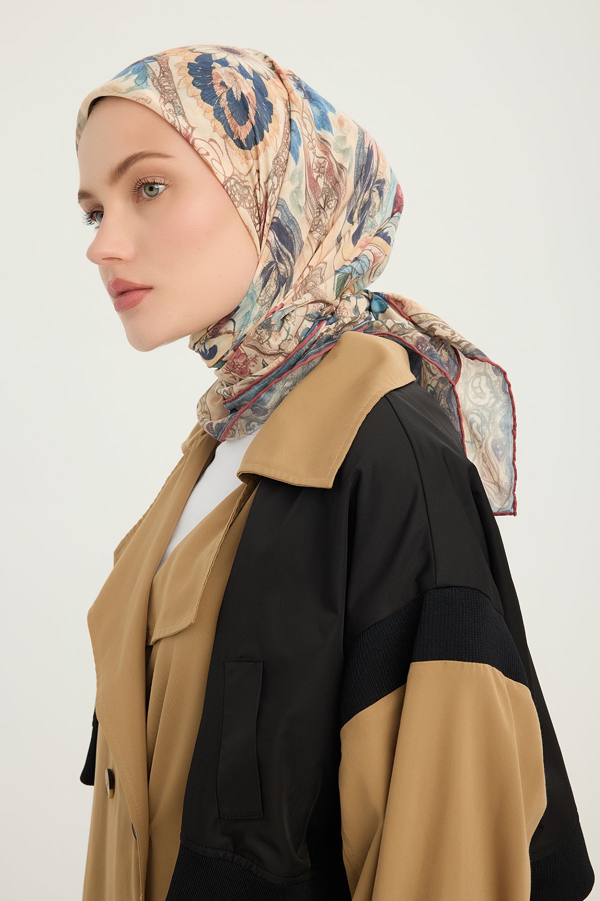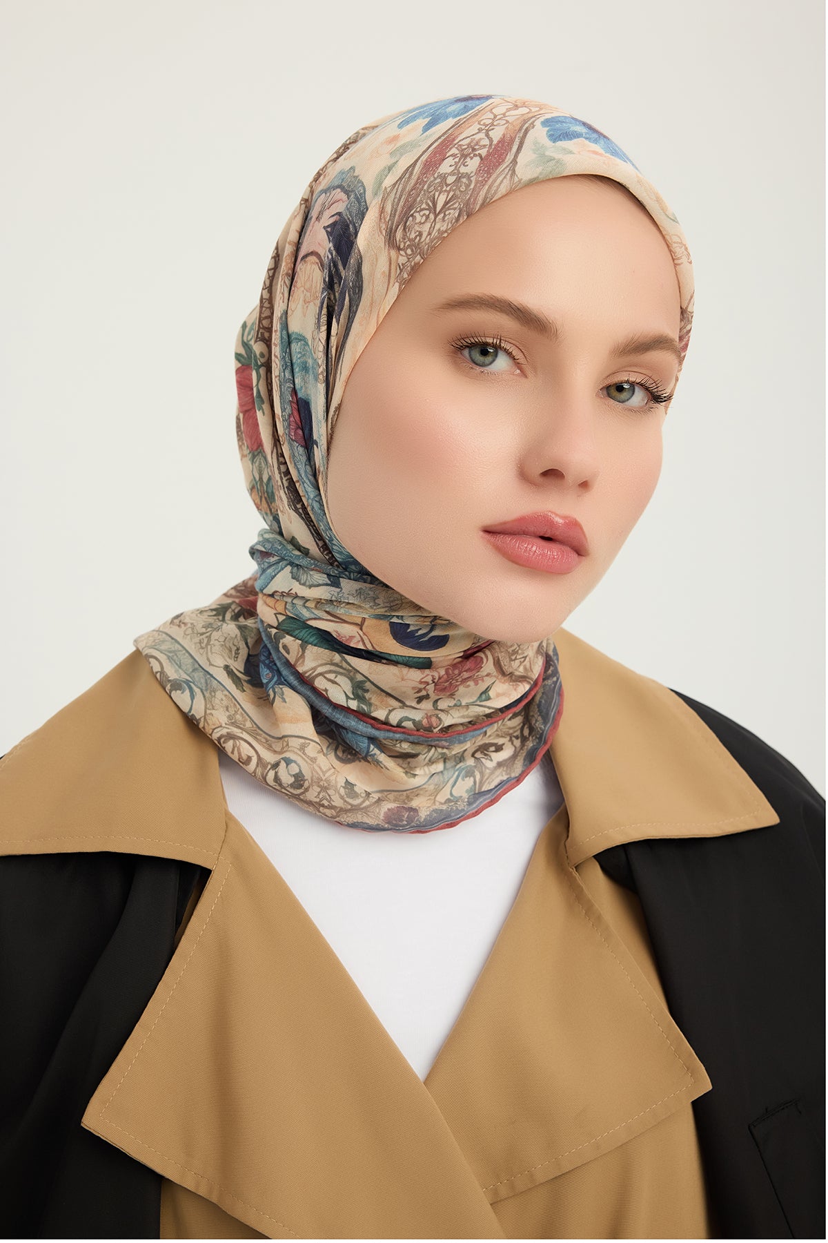 Efilia Desenli Eşarp Çiçek Tahtı Pudra