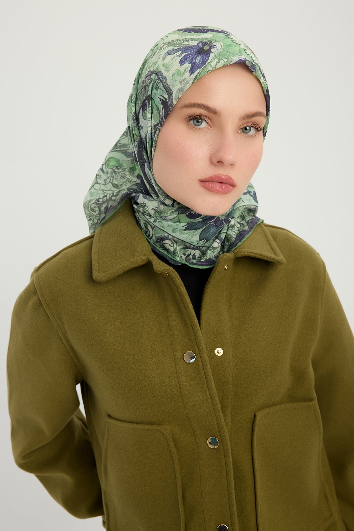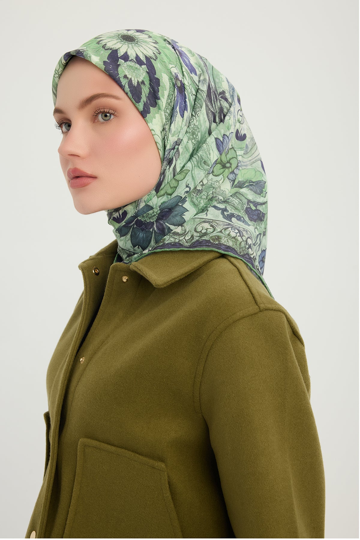 Efilia Desenli Eşarp Çiçek Tahtı Yeşil