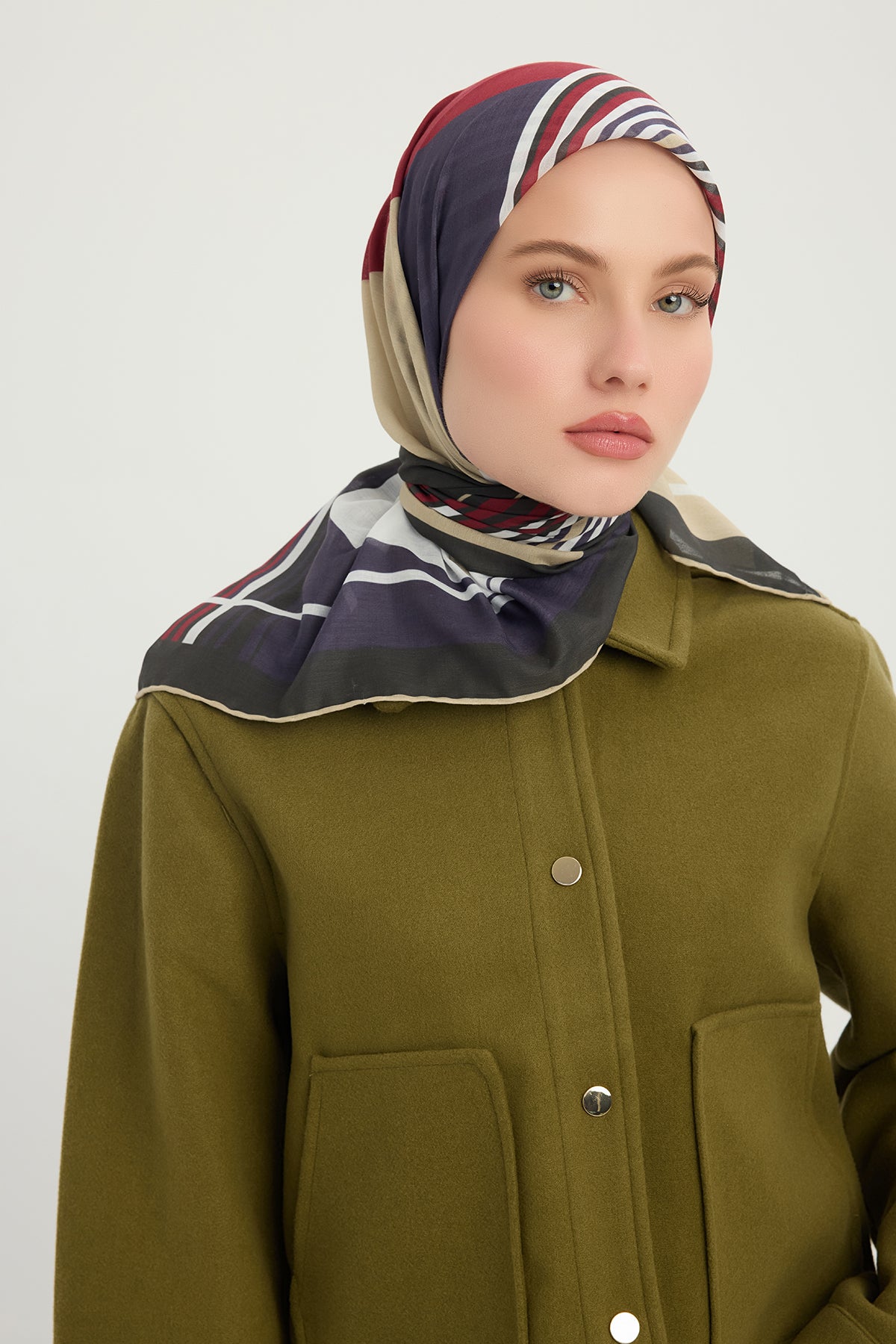 Efilia Desenli Eşarp Gece ve Gündüz Bordo