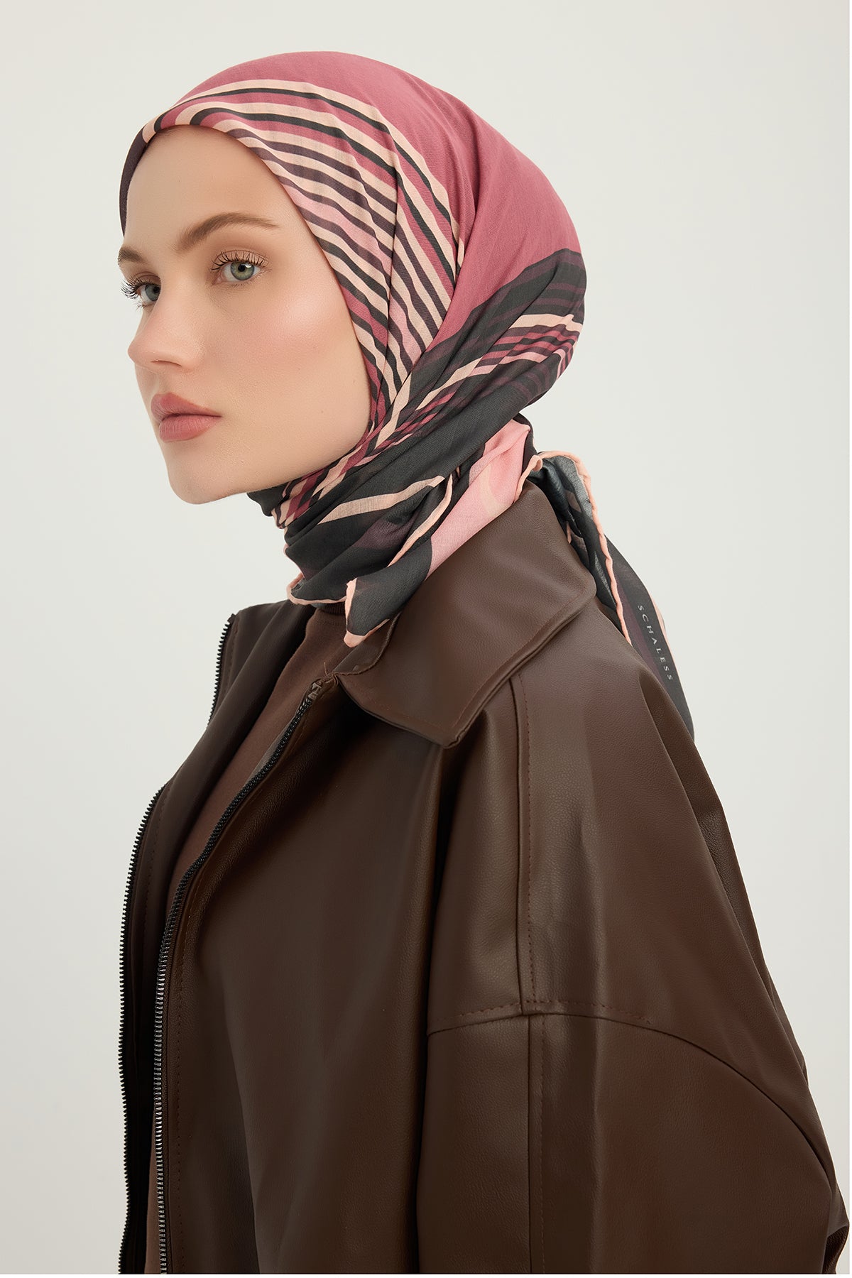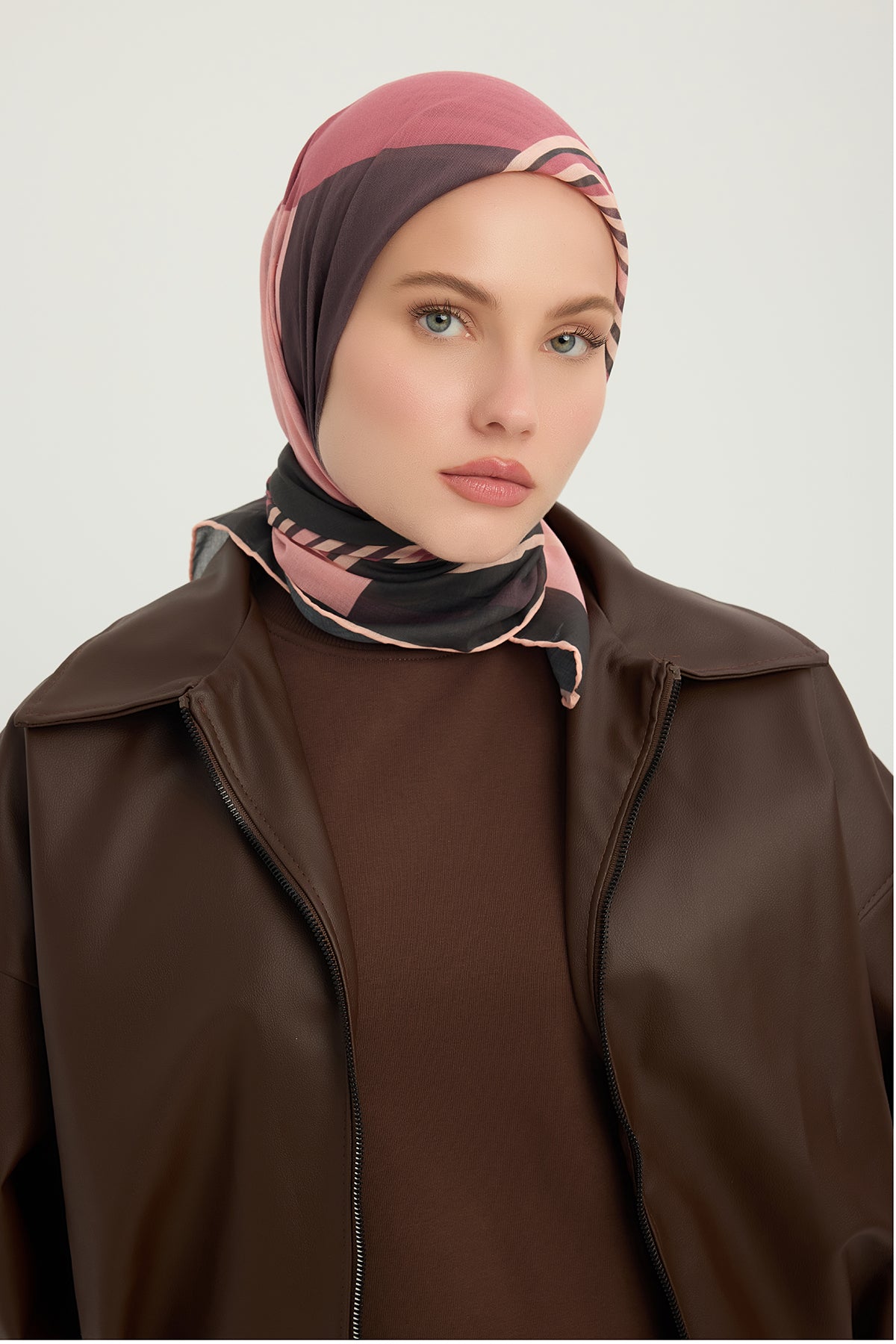 Efilia Desenli Eşarp Gece ve Gündüz Gül Kurusu