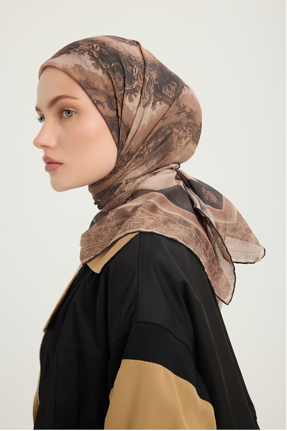 Efilia Desenli Eşarp Köklerin Aynası Kahverengi