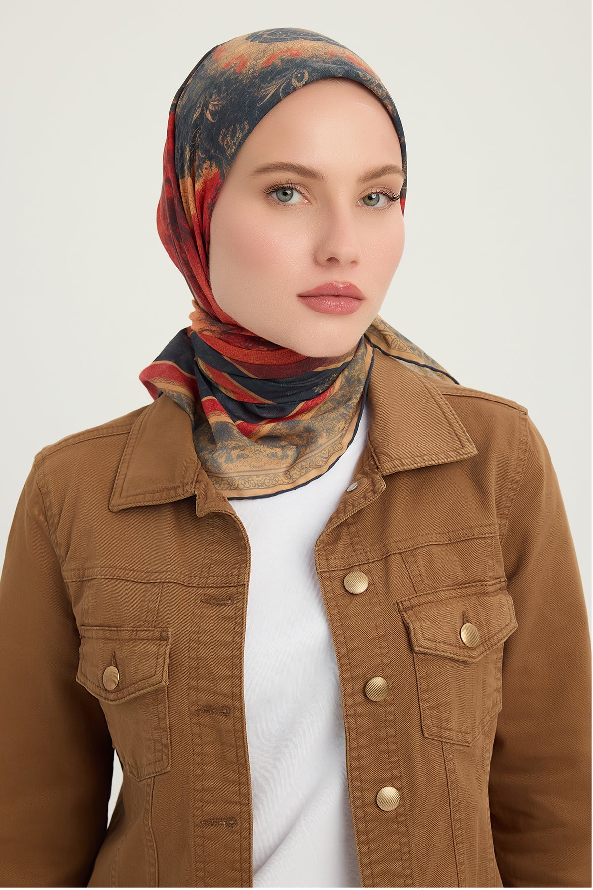 Efilia Desenli Eşarp Köklerin Aynası Kırmızı