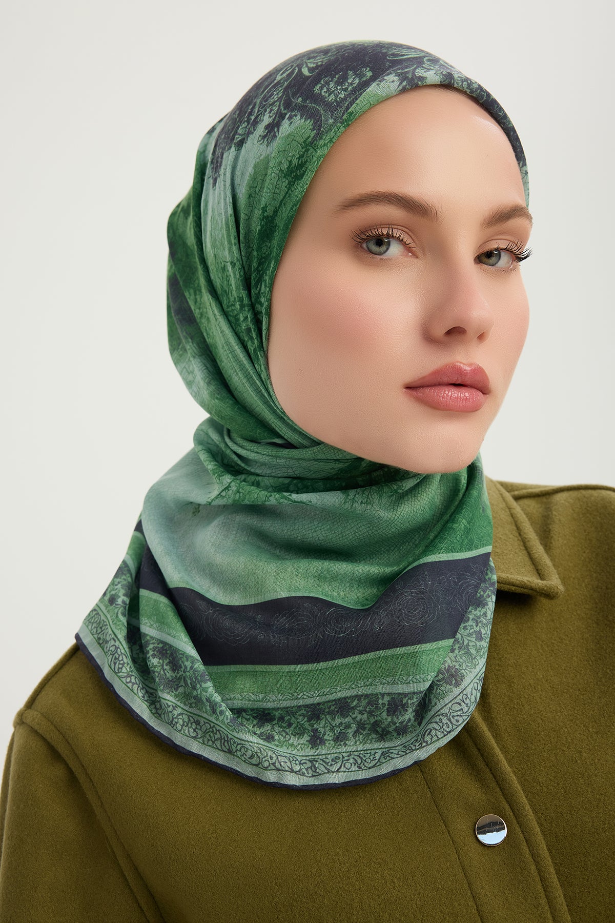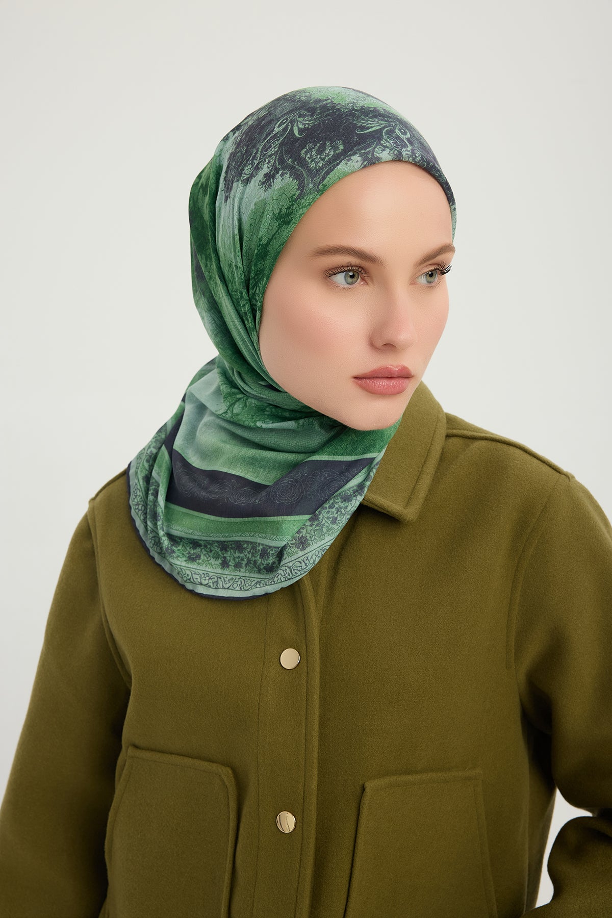 Efilia Desenli Eşarp Köklerin Aynası Yeşil