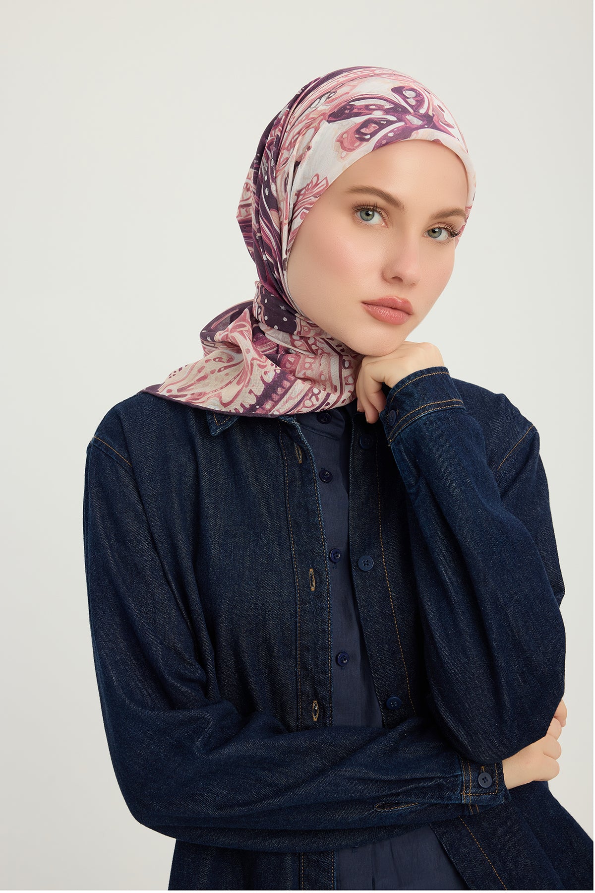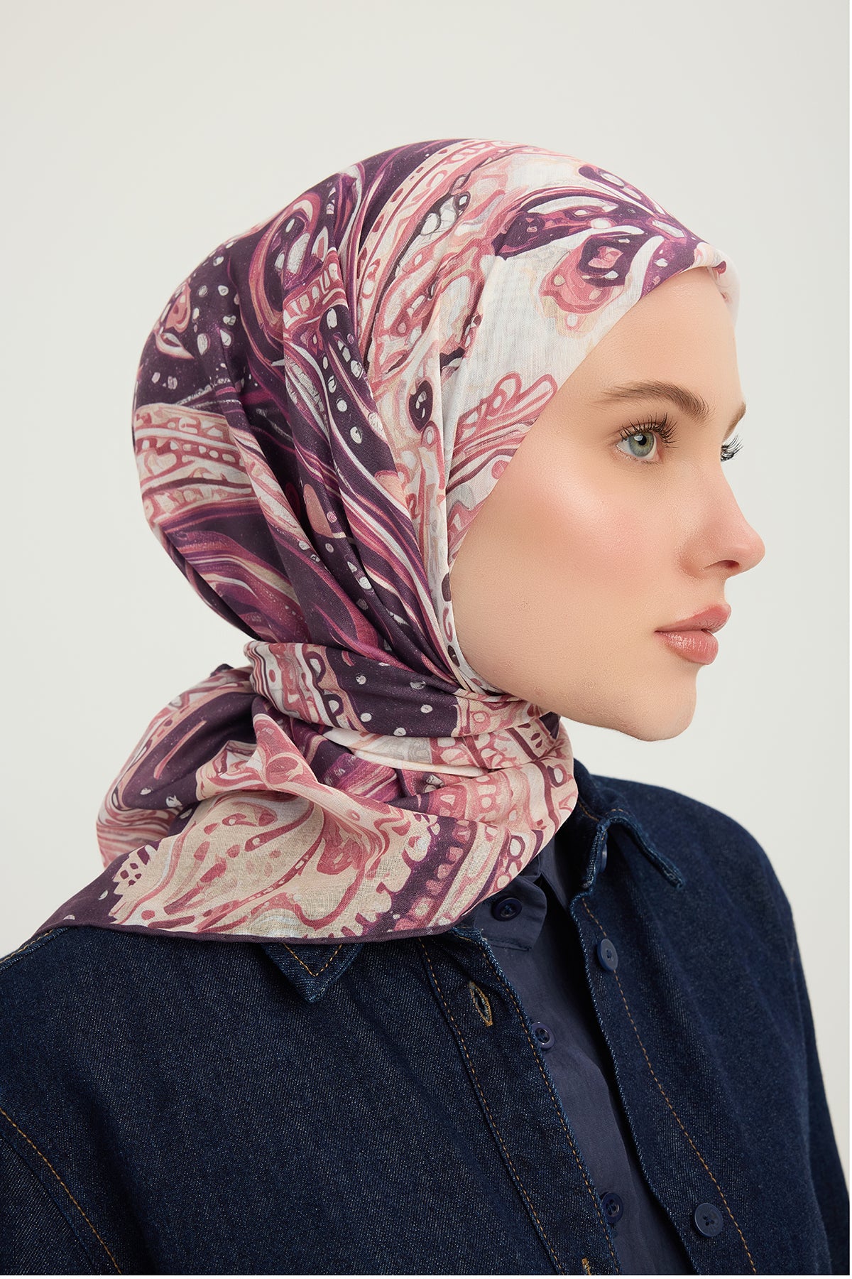 Efilia Desenli Eşarp Kozmik Paisley Pudra