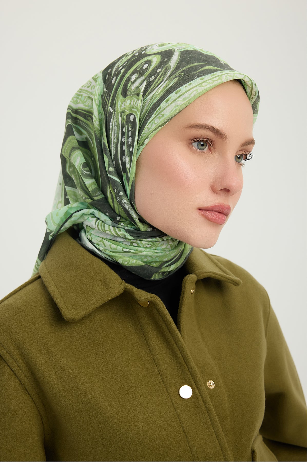 Efilia Desenli Eşarp Kozmik Paisley Yeşil