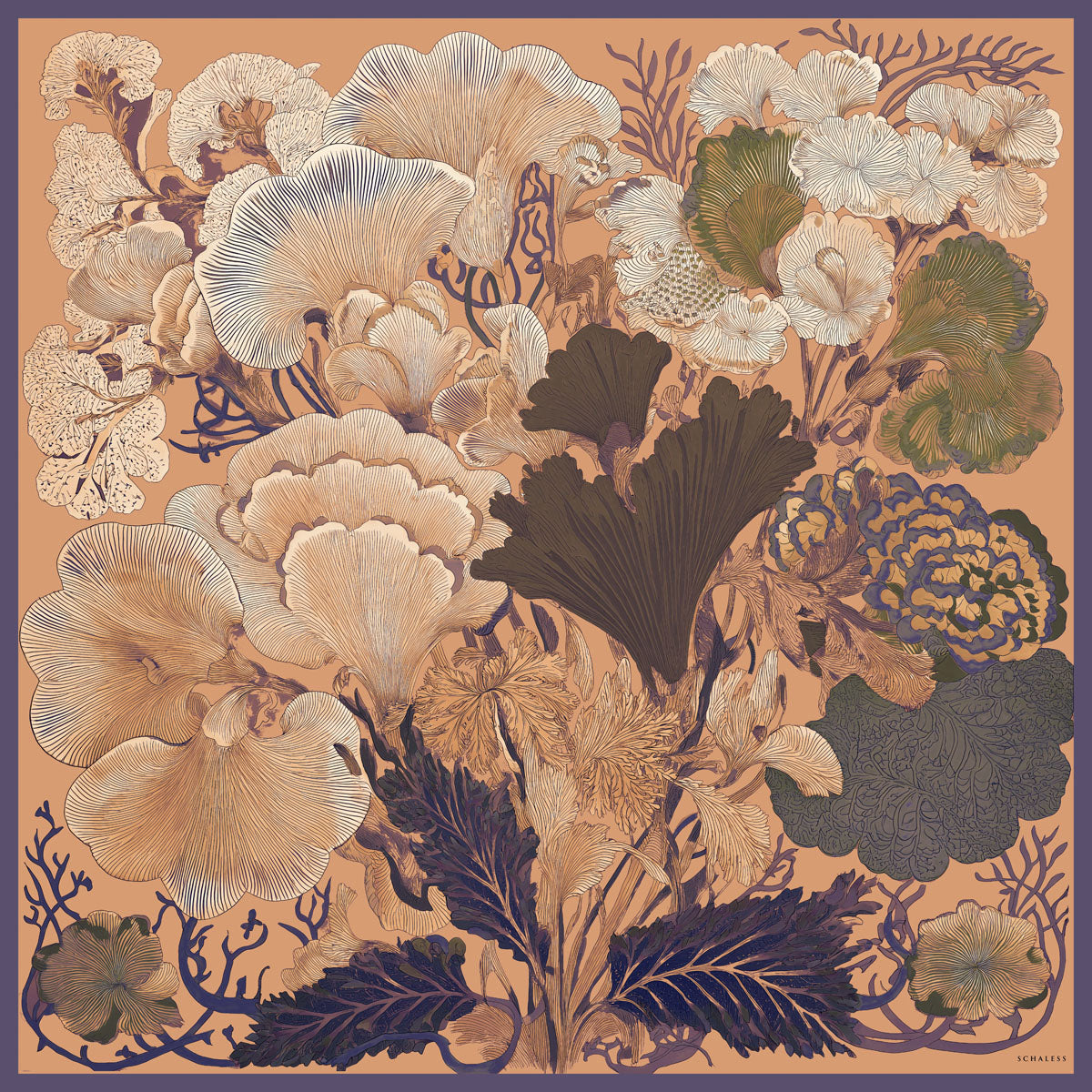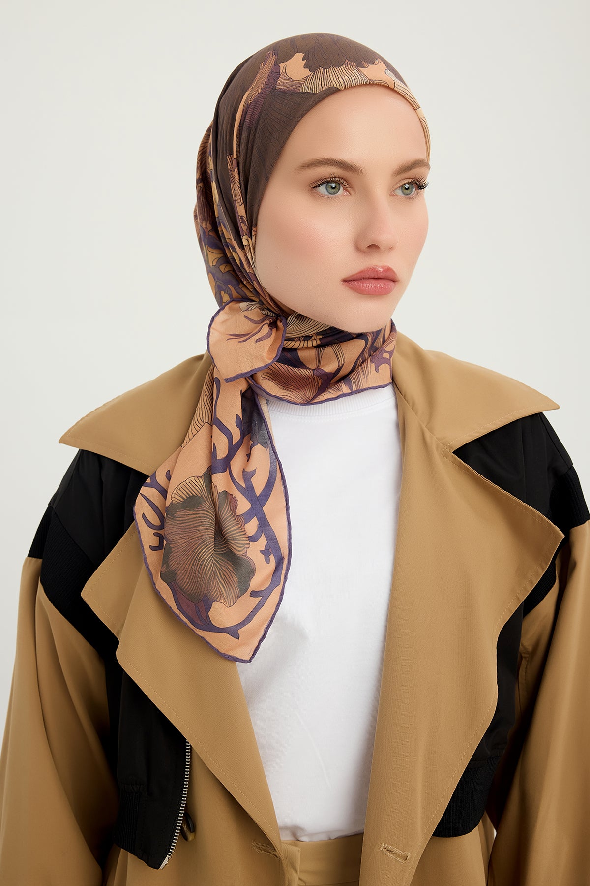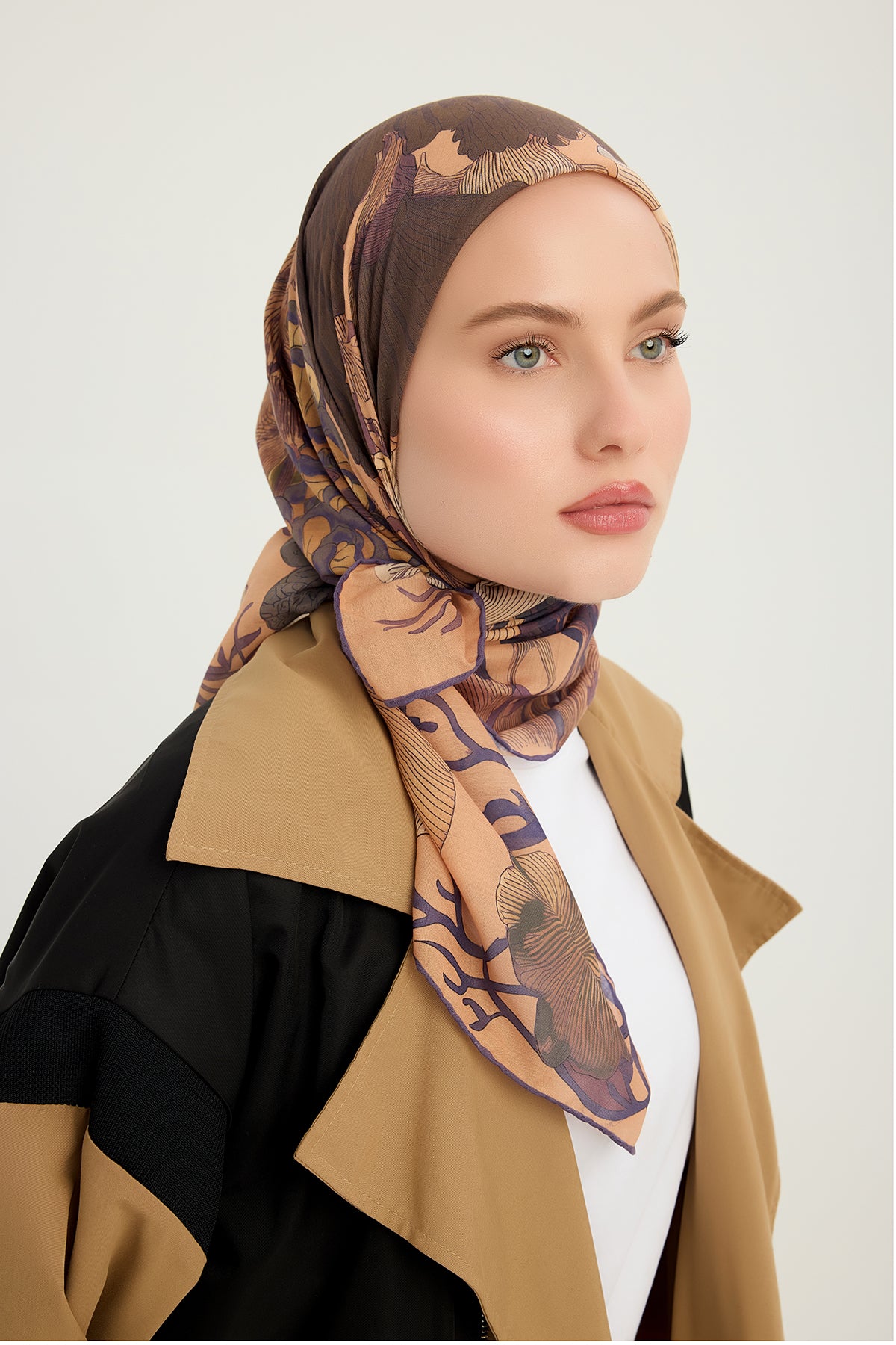 Efilia Desenli Eşarp Mercan Bahçesi Açık Kahve