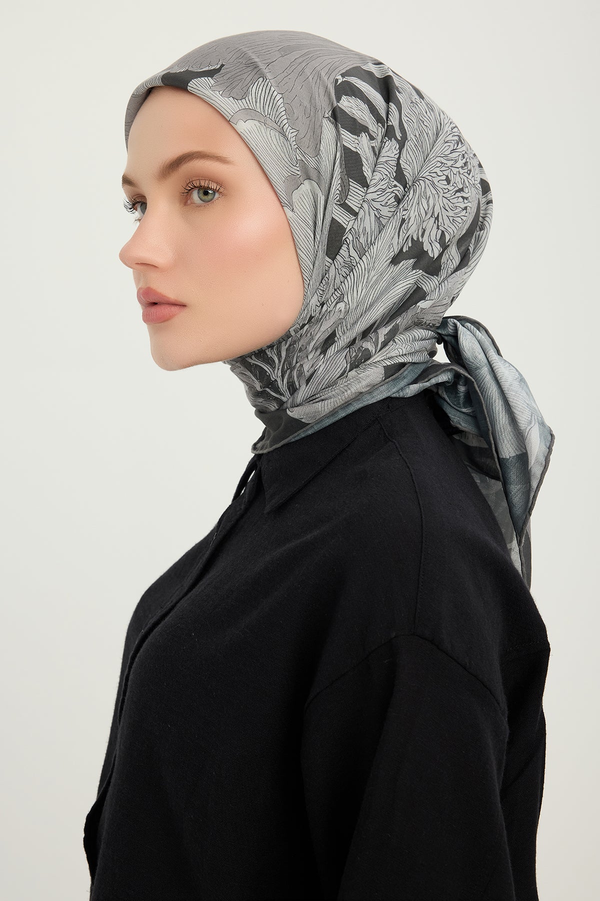 Efilia Desenli Eşarp Mercan Bahçesi Siyah