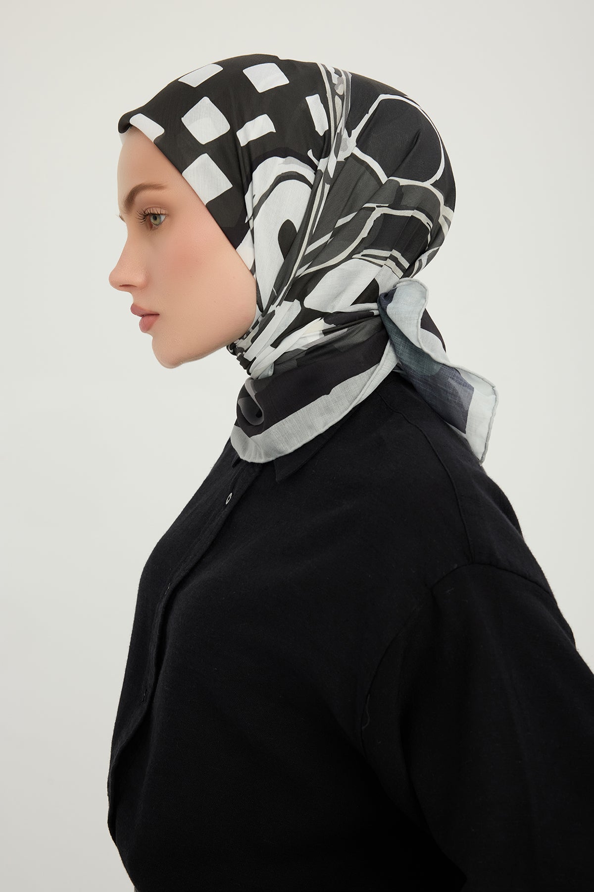 Efilia Desenli Eşarp Pastel Yolculuk Gri