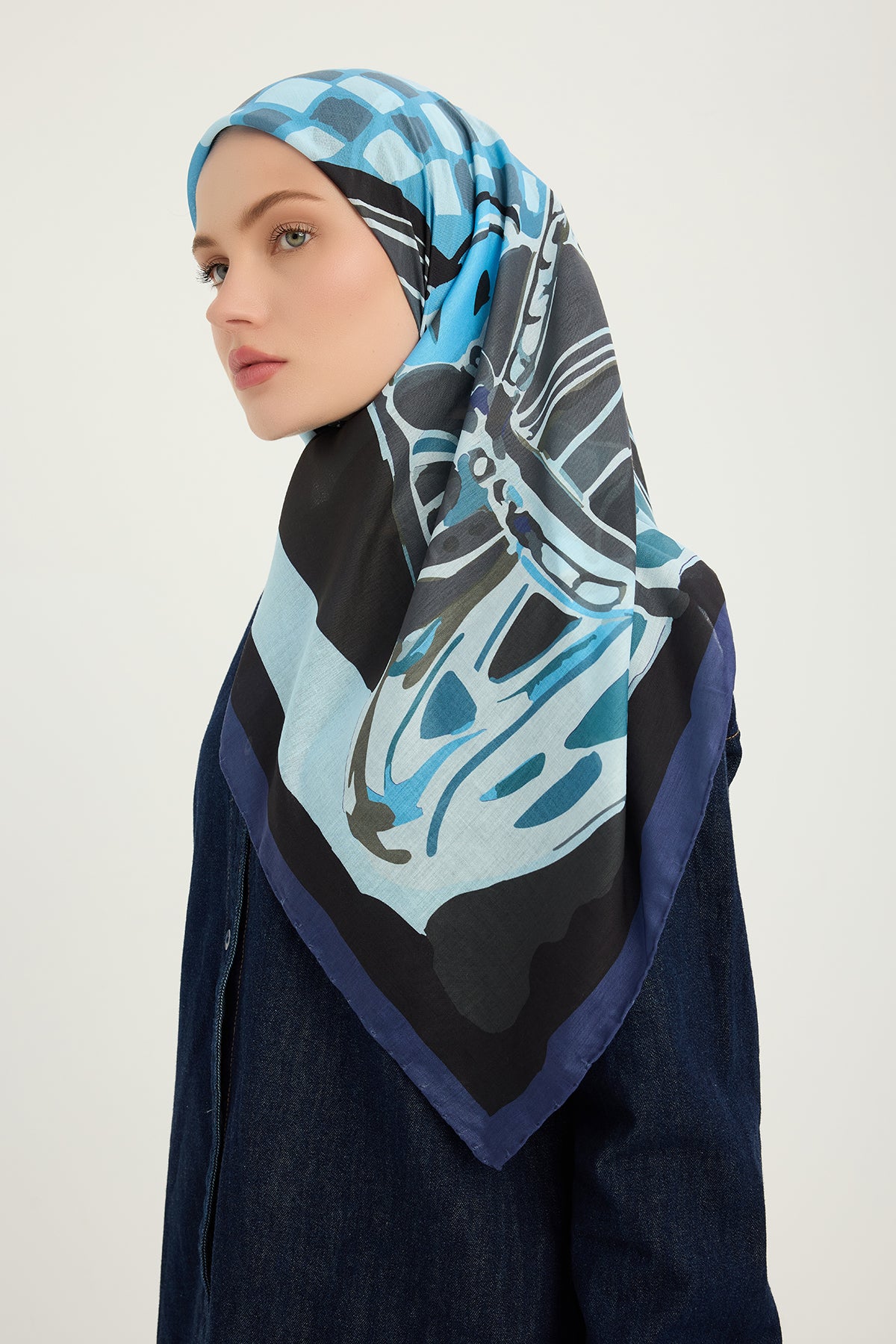 Efilia Desenli Eşarp Pastel Yolculuk Lacivert