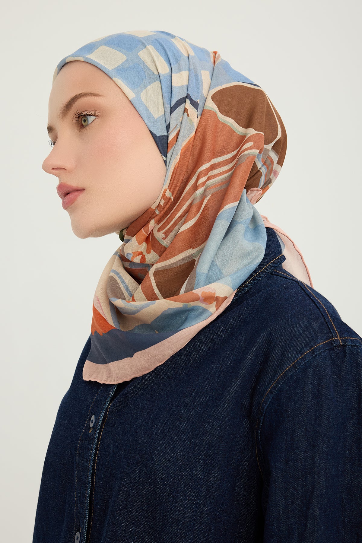 Efilia Desenli Eşarp Pastel Yolculuk Somon