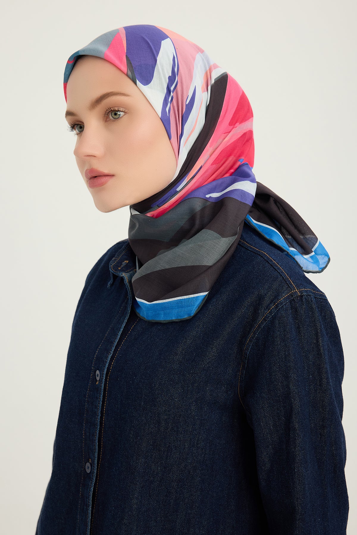 Efilia Desenli Eşarp Renklerin Lalesi Fuşya