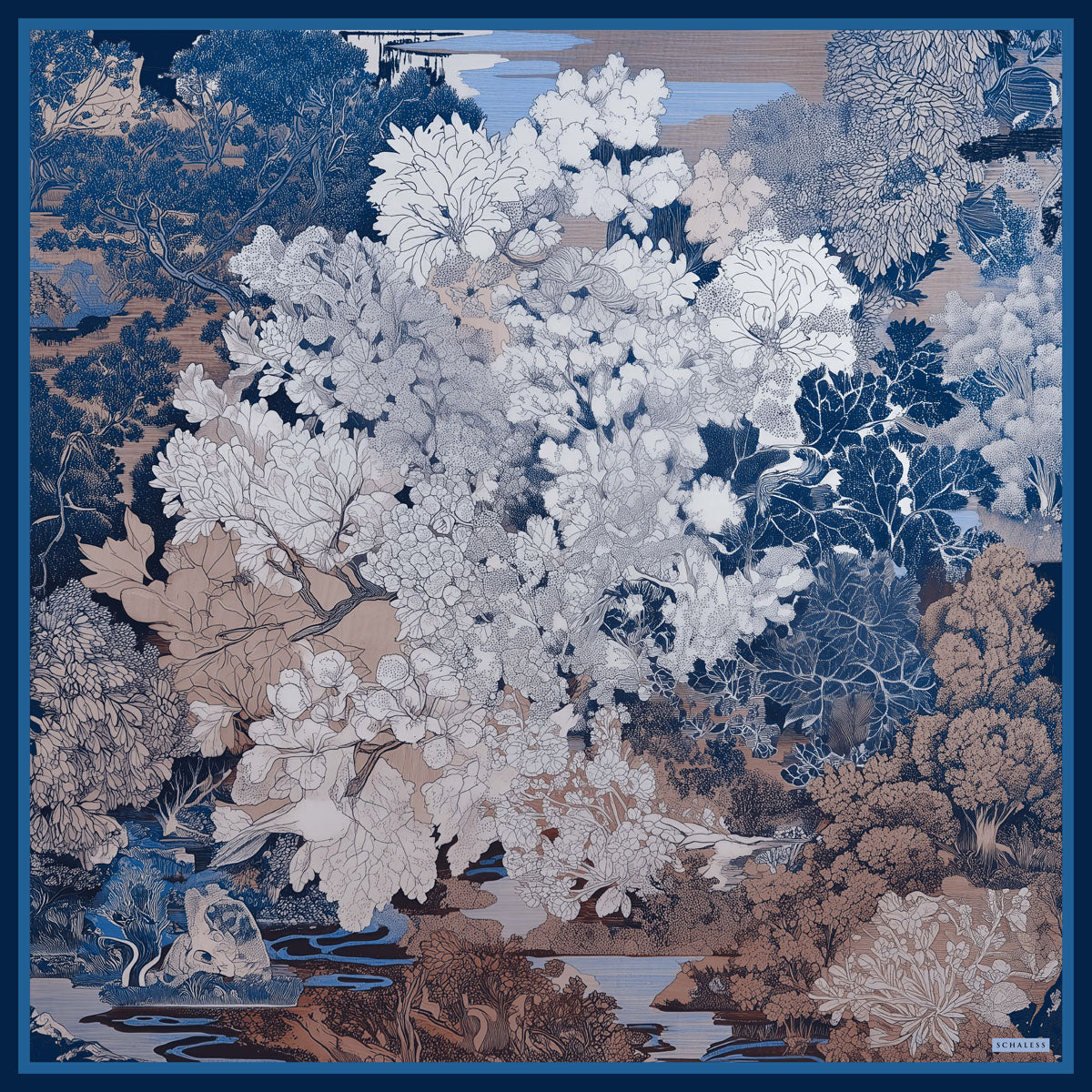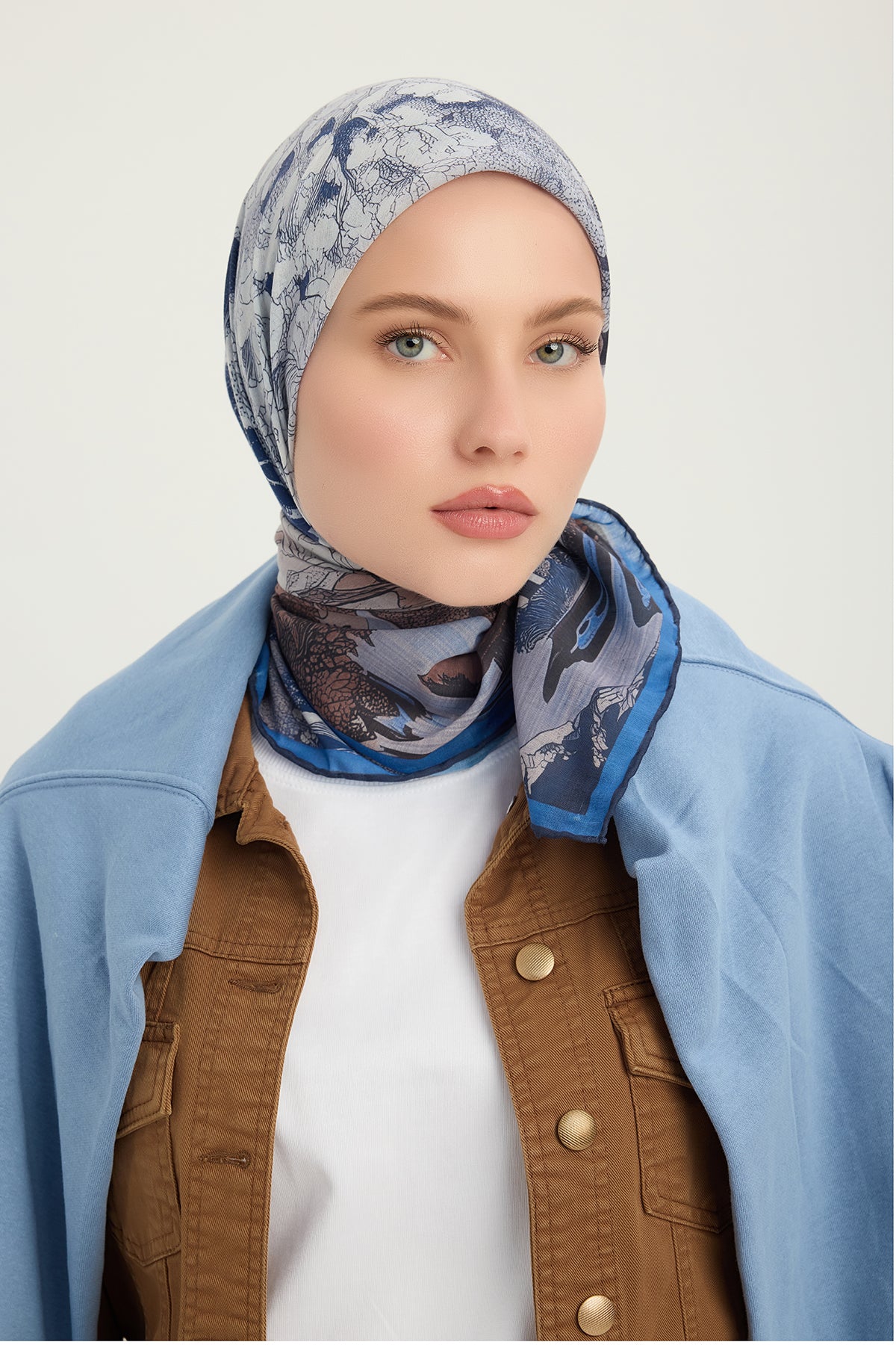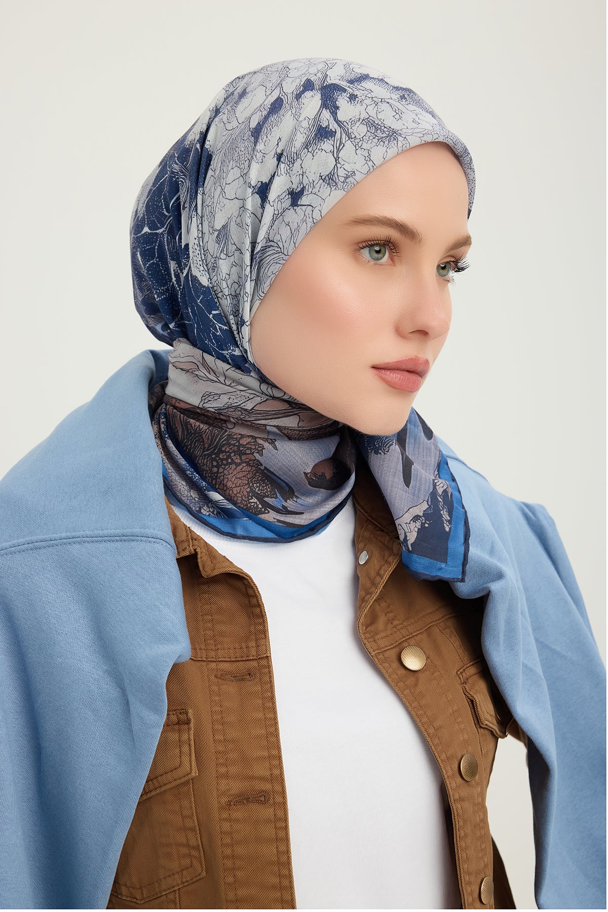 Efilia Desenli Eşarp Sessiz Mevsimler Lacivert